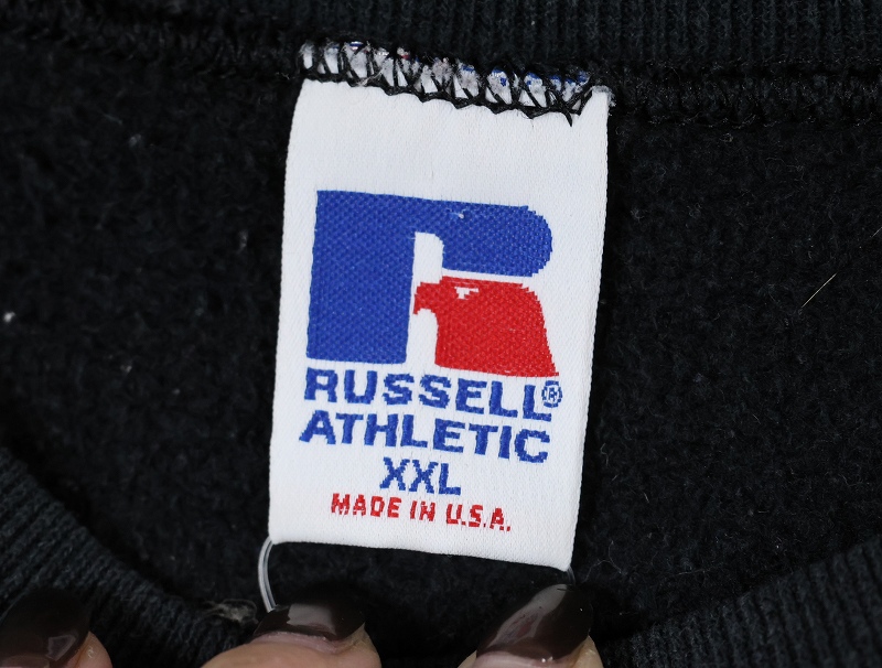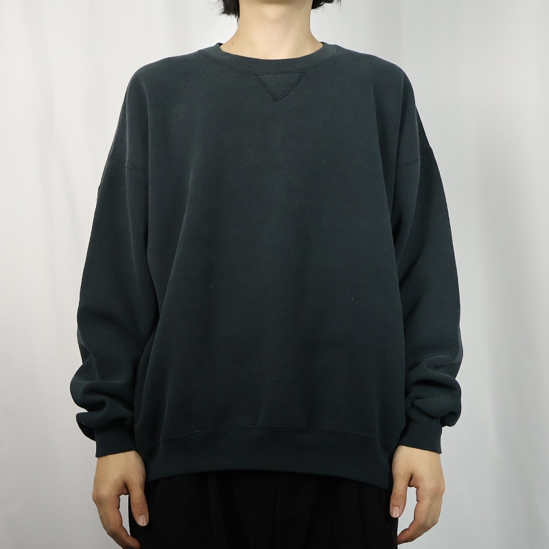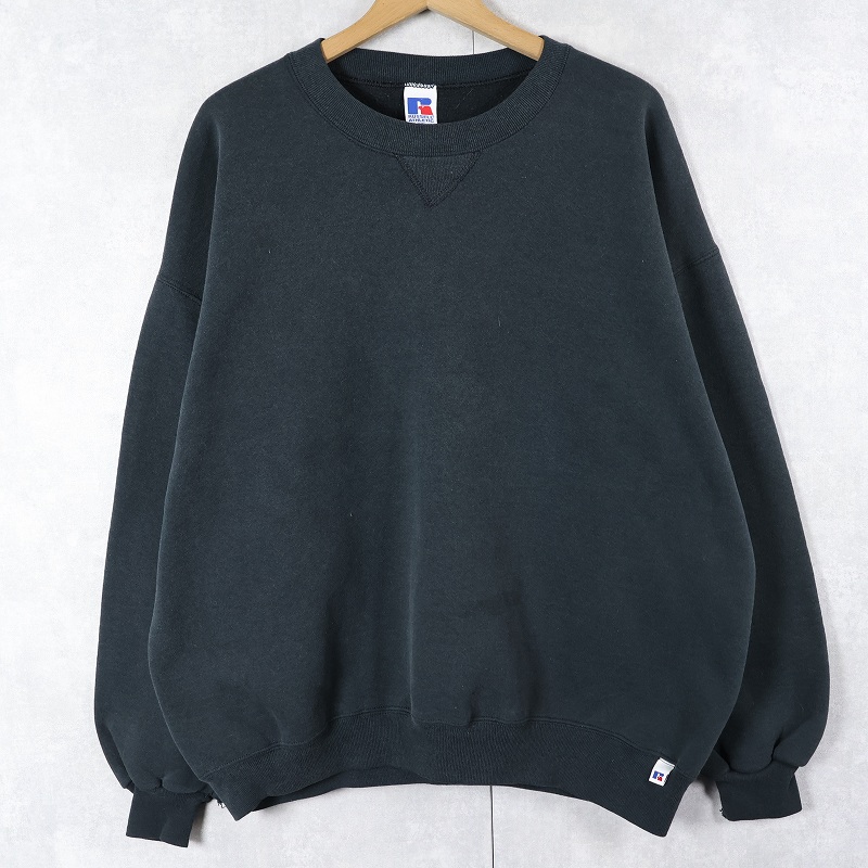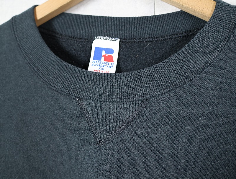 90's RUSSELL ATHLETIC USA製 前V 無地スウェット BLACK XXL [162307]