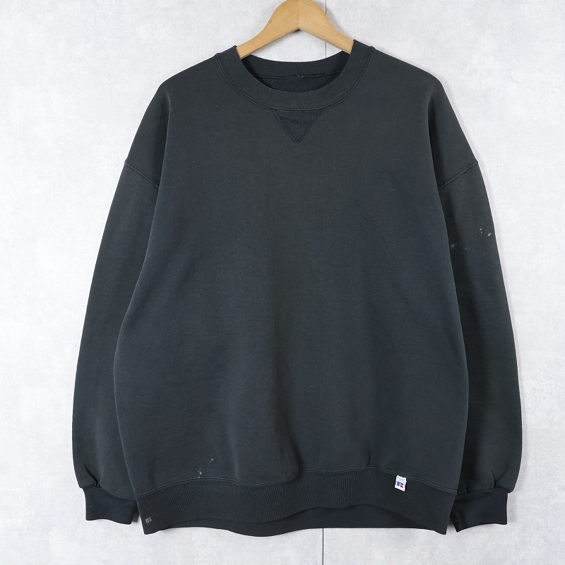 90's RUSSELL ATHLETIC 前V 無地スウェット BLACK [162308]