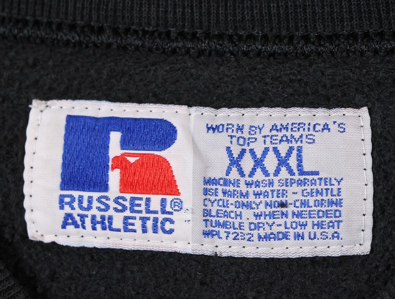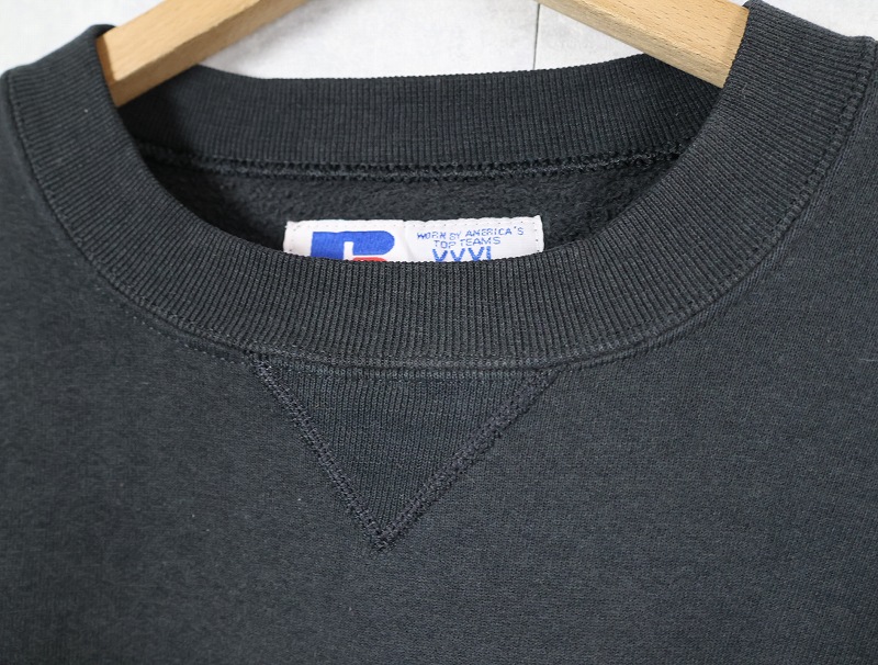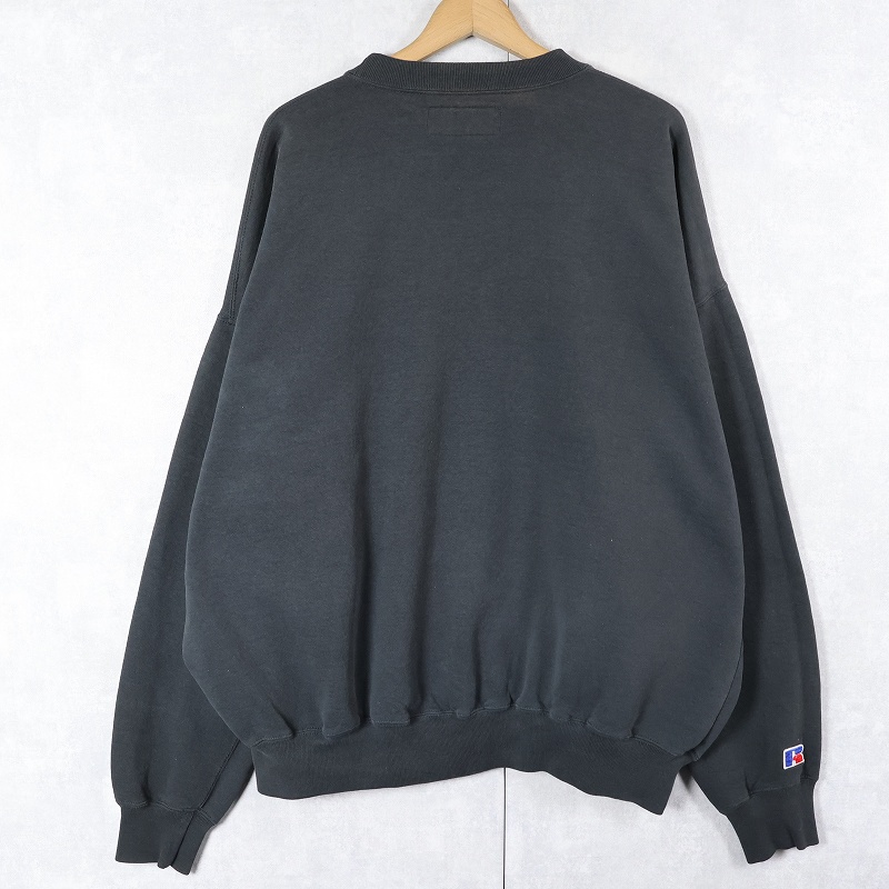 90's RUSSELL ATHLETIC USA製 前V 無地スウェット BLACK XXXL [162312]
