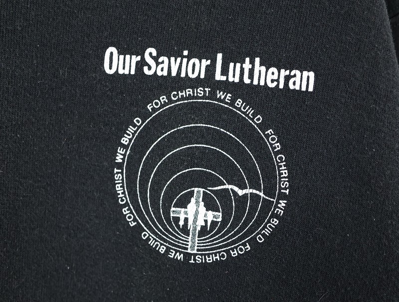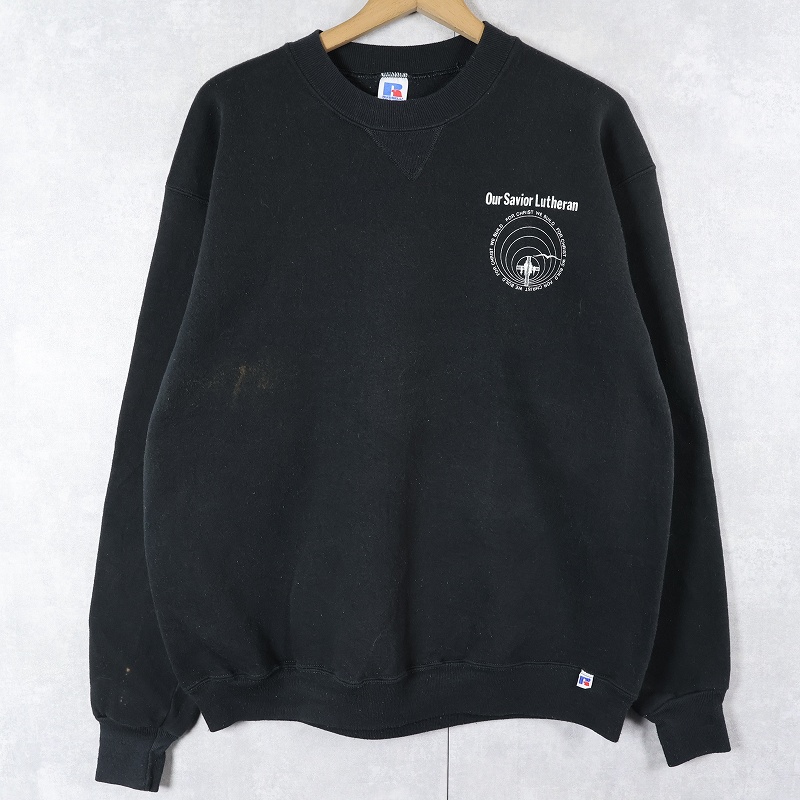 80's RUSSELL ATHLETIC USA製 "Our Savior Lutheran" 前V 協会プリントスウェット BLACK XL [162312]
