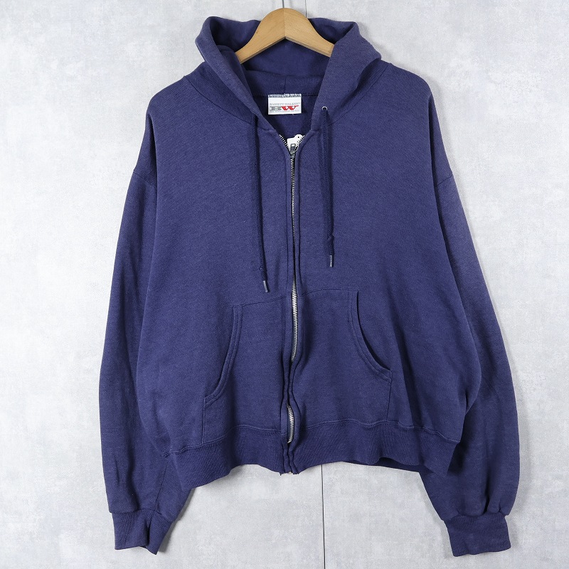 80's BASSETT-WALKER USA製 無地スウェットジップパーカー NAVY [162322]
