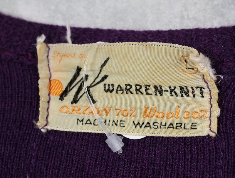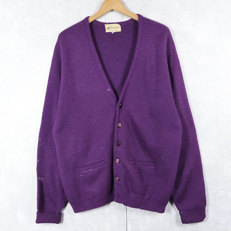 60〜70's WARRENKNIT ウールニットカーディガン L [162330]