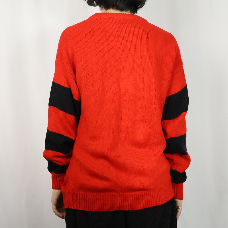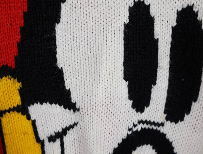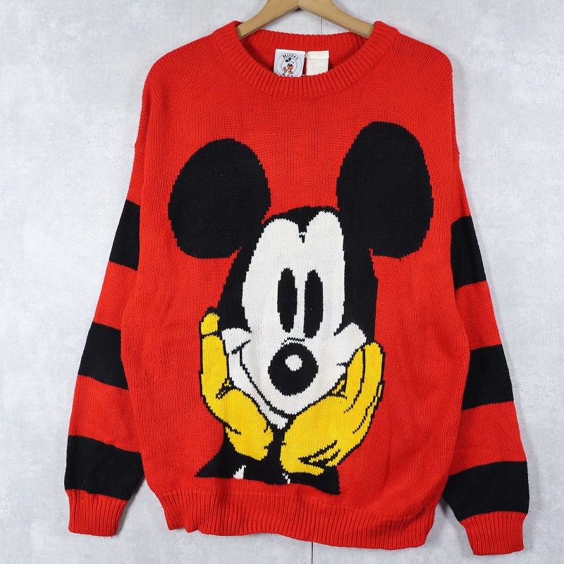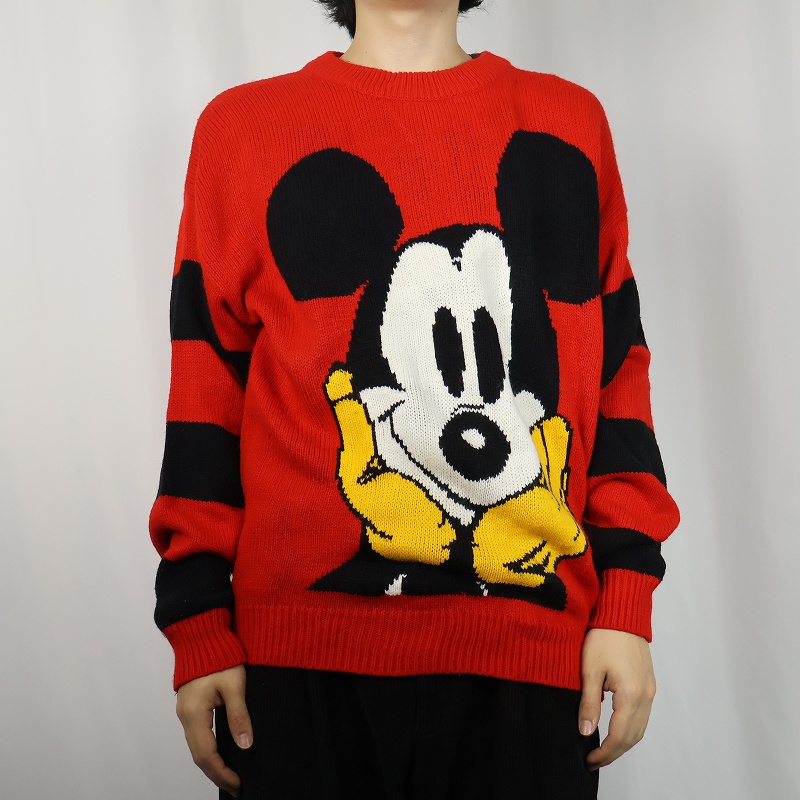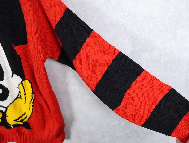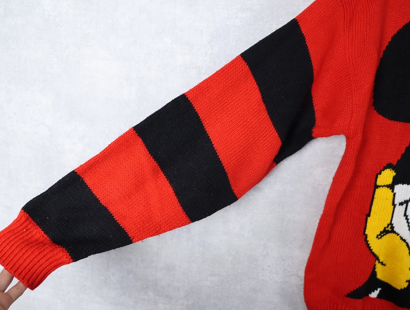 90's MICKEY&CO. MICKEY MOUSE 袖ボーダー アクリルニットセーター [162349]