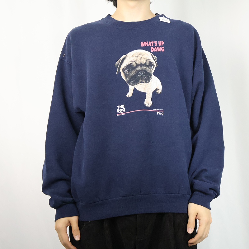 THE DOG "Pug" 犬プリントスウェット NAVY L [162351]