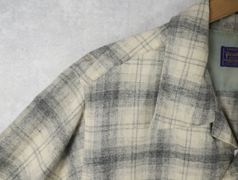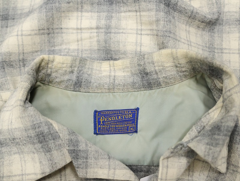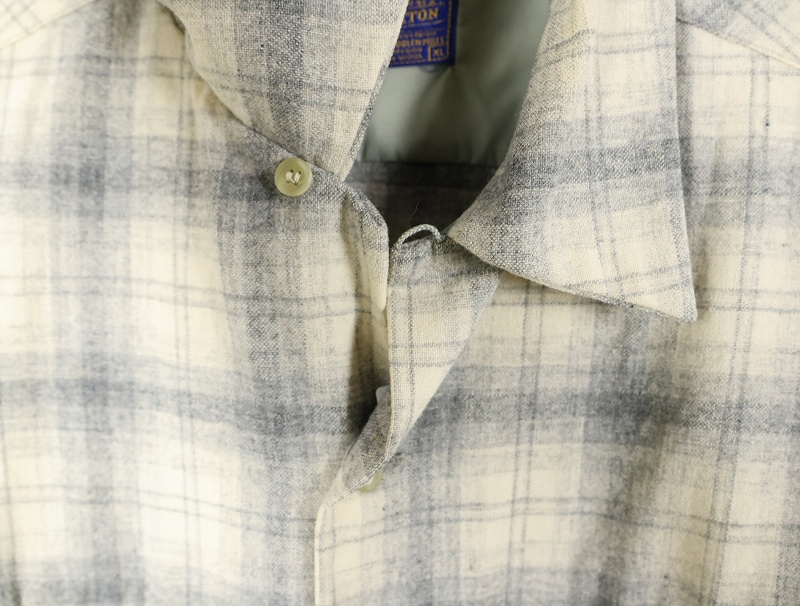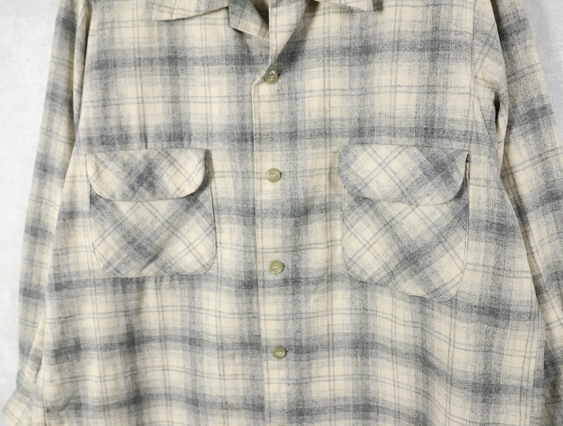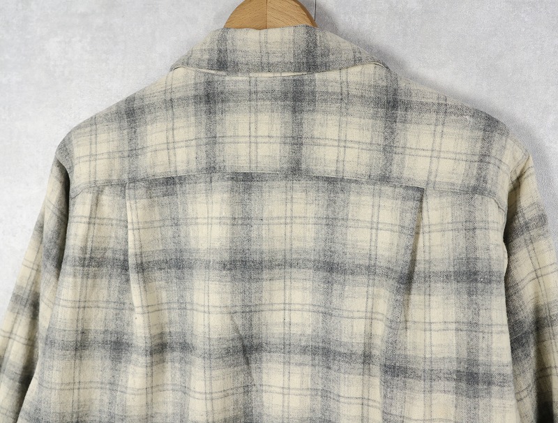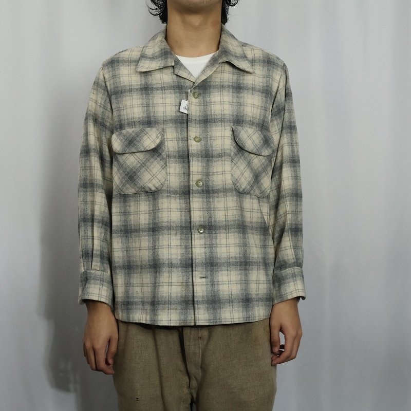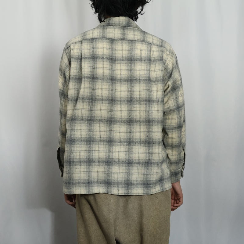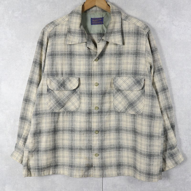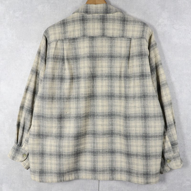 50's PENDLETON オンブレーチェック柄 オープンカラーウールシャツ XL [162376]