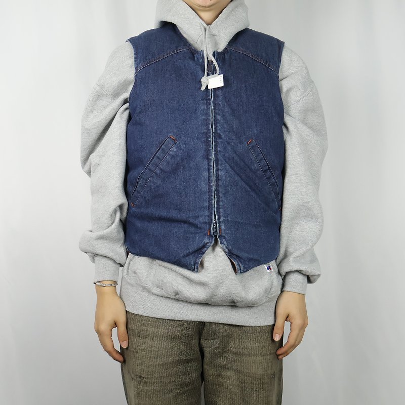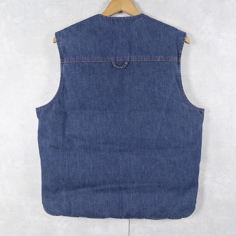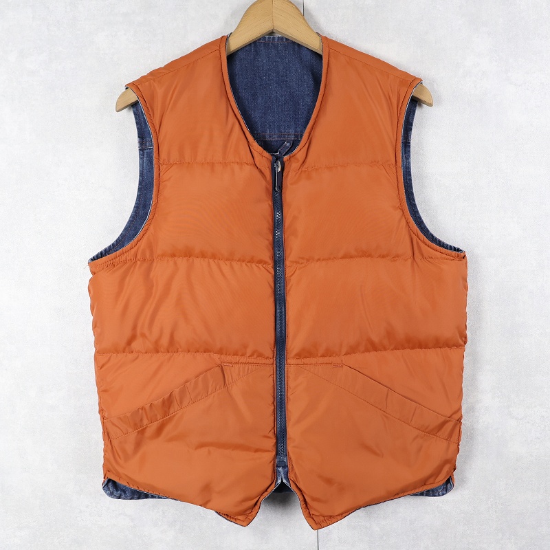 70〜80's Eddie Bauer ナイロン×デニム リバーシブル グースダウンベスト S [162408]