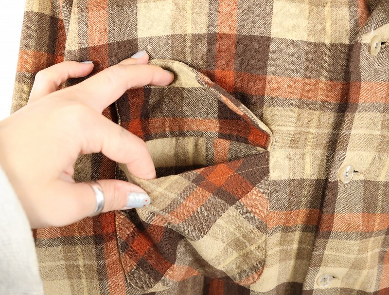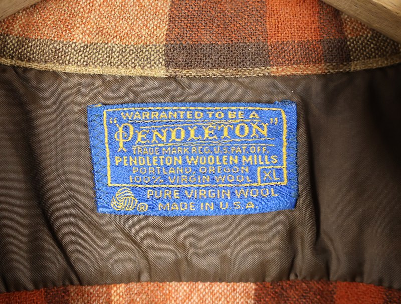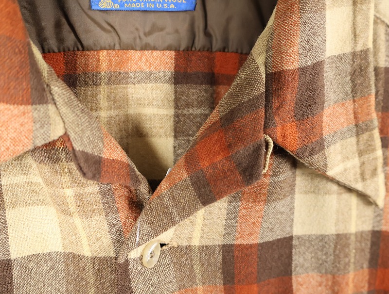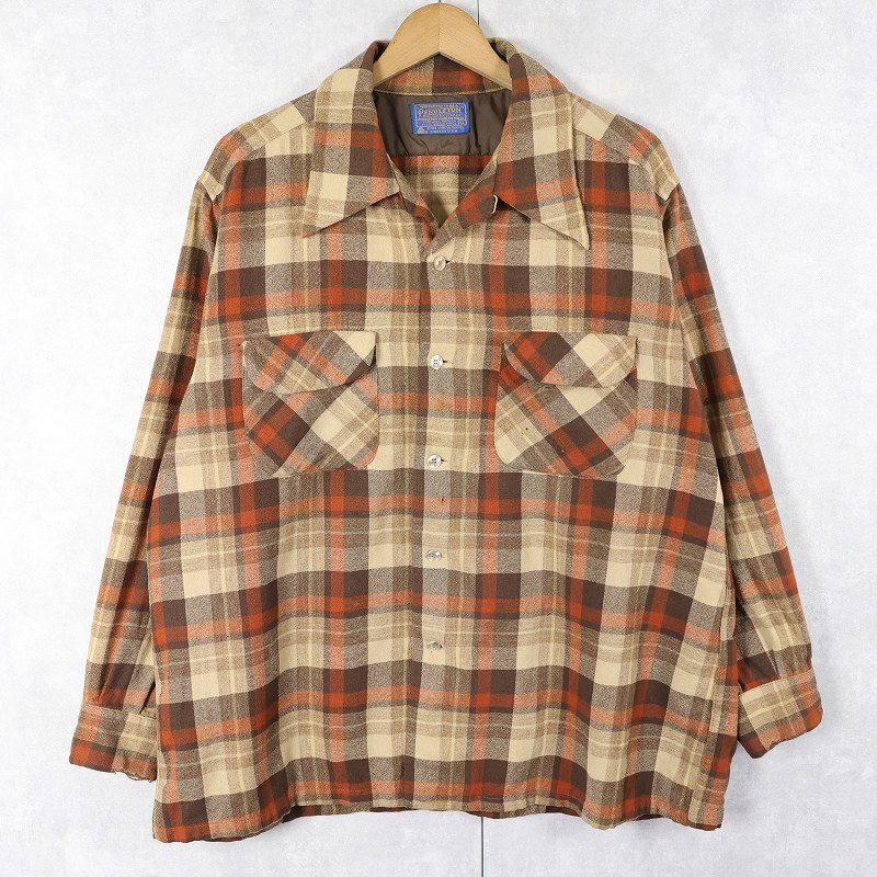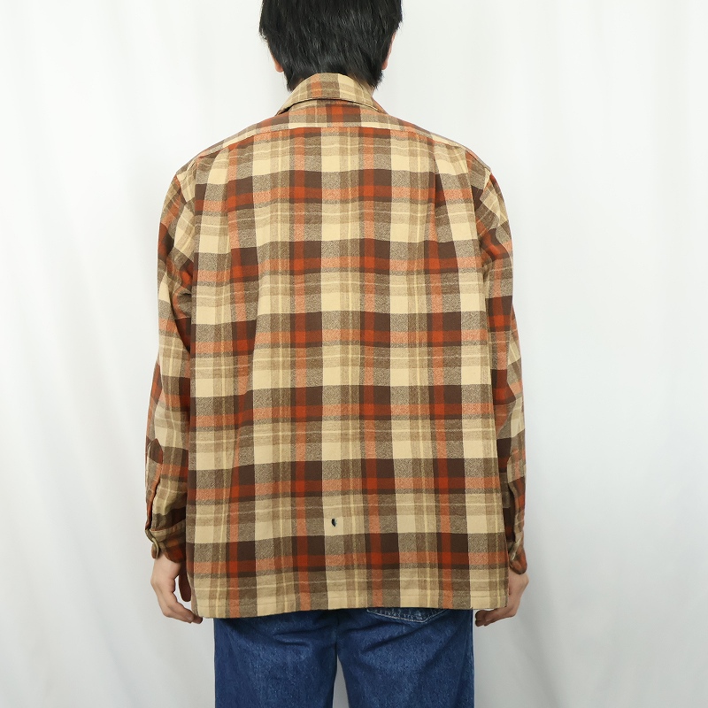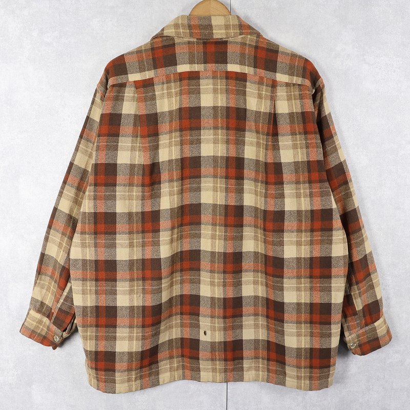 70's PENDLETON USA製 チェック柄 オープンカラーウールシャツ XL [162433]