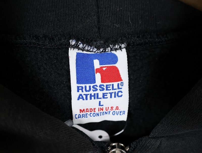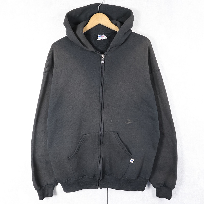 90's RUSSELL ATHLETIC USA製 無地 スウェットジップパーカー BLACK L [162438]