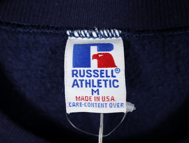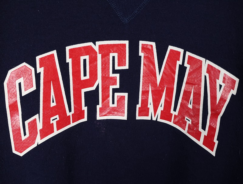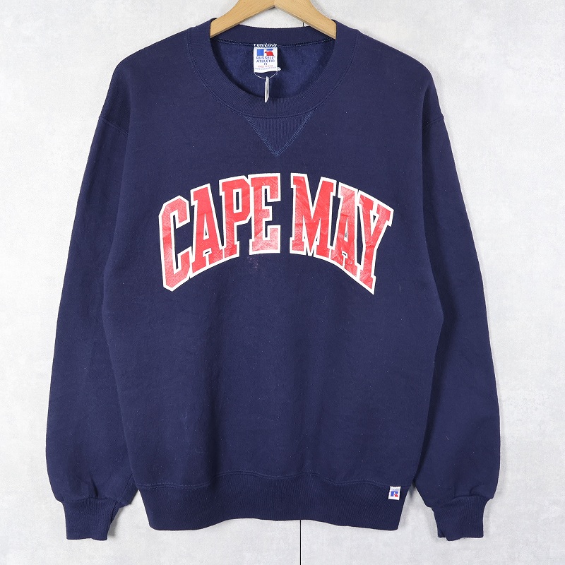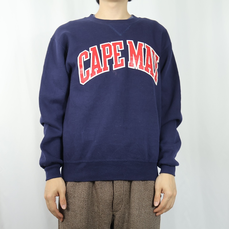90's RUSSELL ATHLETIC USA製 "CAPE MAY" 前V プリントスウェット NAVY M [162441]