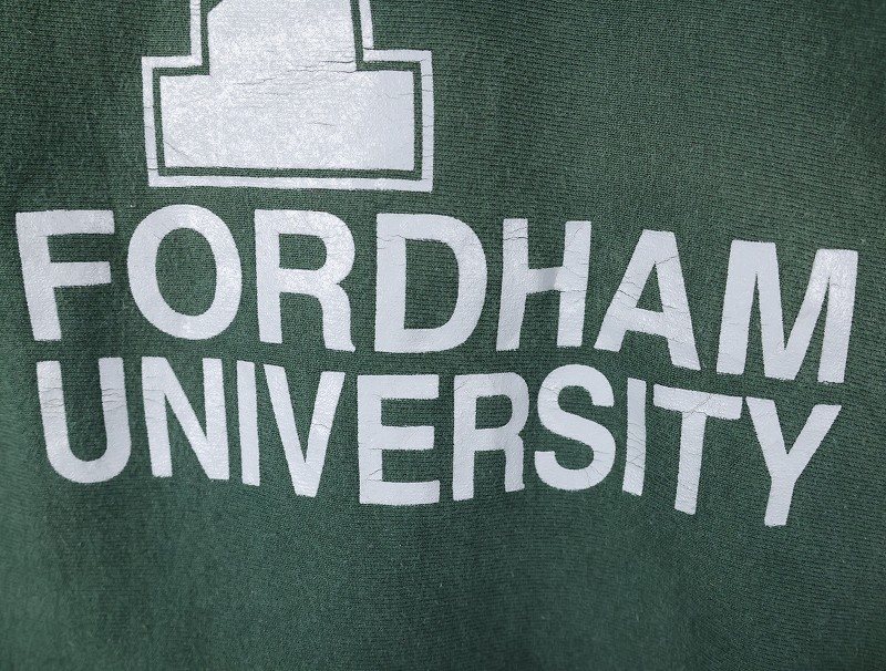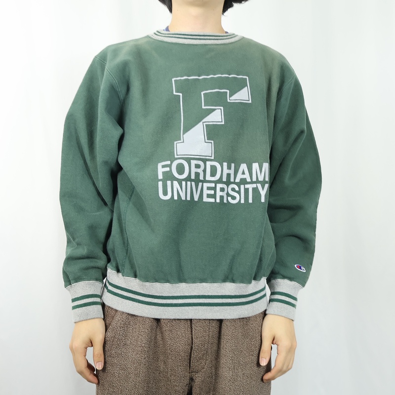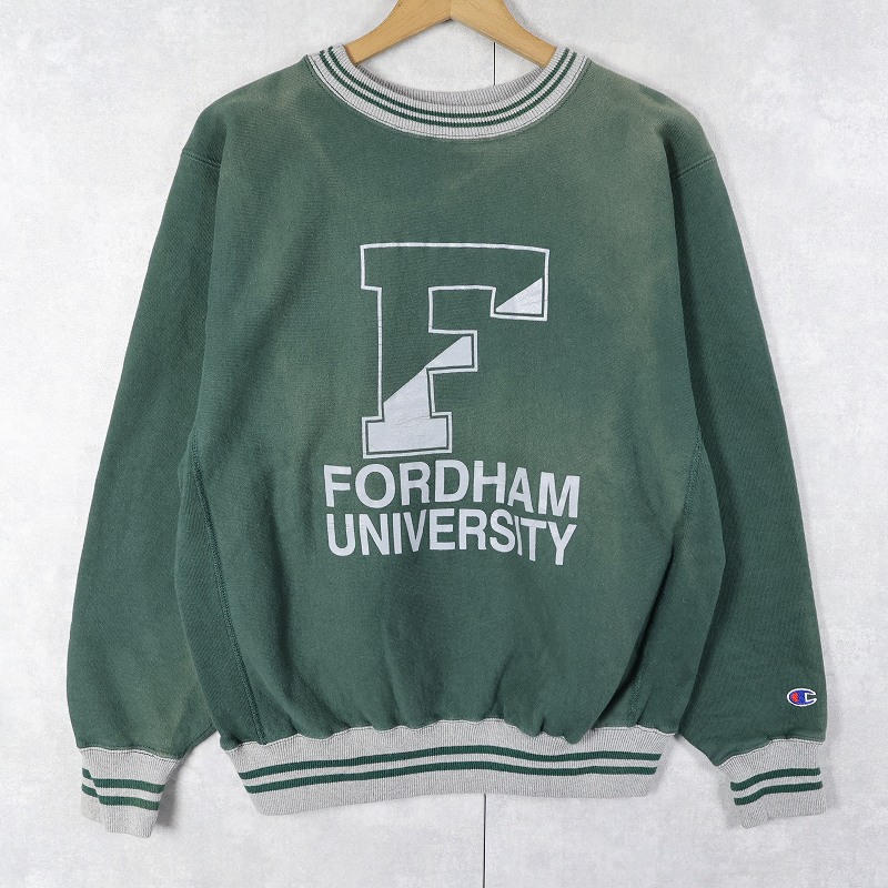 90's Champion REVERSE WEAVE USA製 "FORDHAM UNIVERSITY" リブボーダー プリントスウェット M [162442]