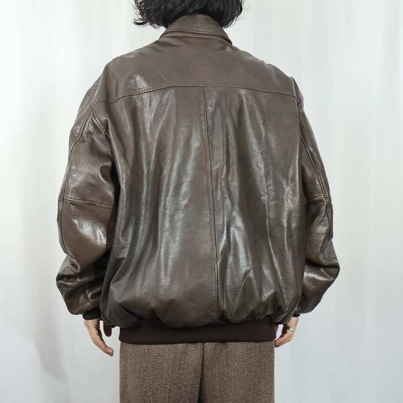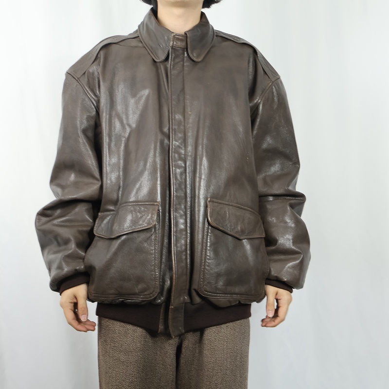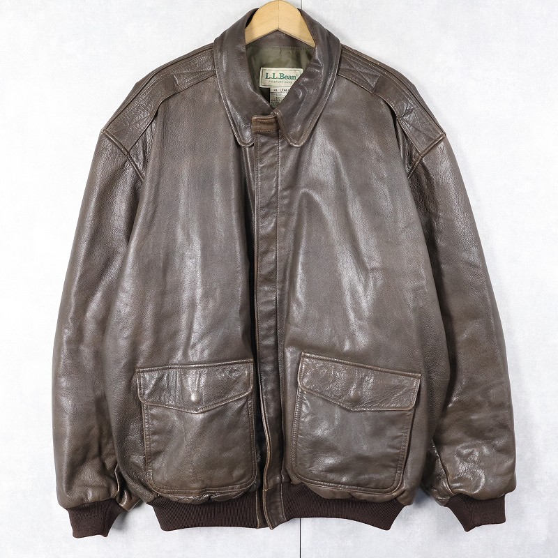 80〜90's L.L.Bean USA製 "A-2 TYPE" レザーフライトジャケット BROWN XL [162450]
