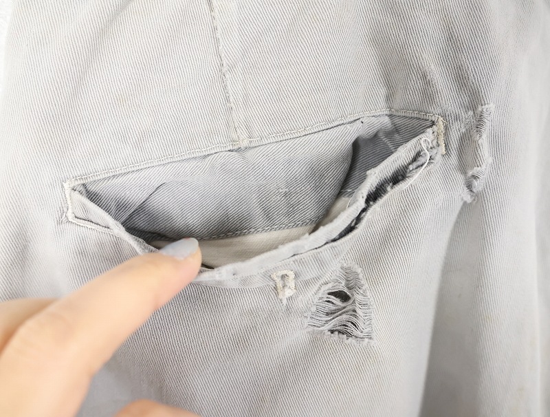 - 擦れやほつれ、汚れや後ろポケットのボタン欠損がありますが、とても雰囲気の良い一点です。