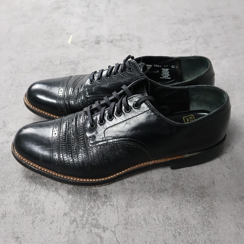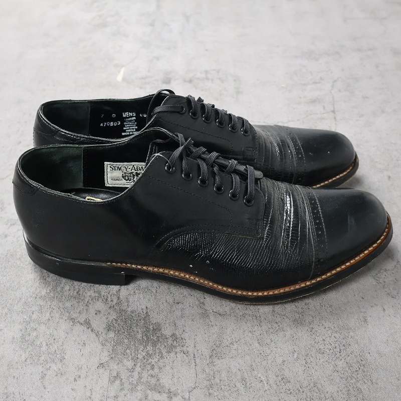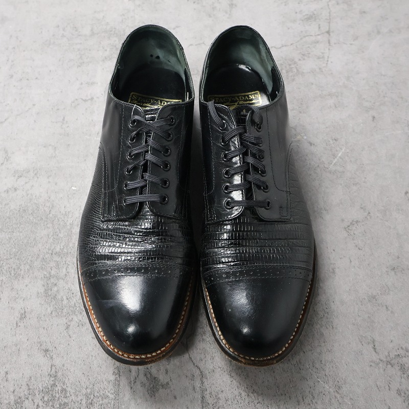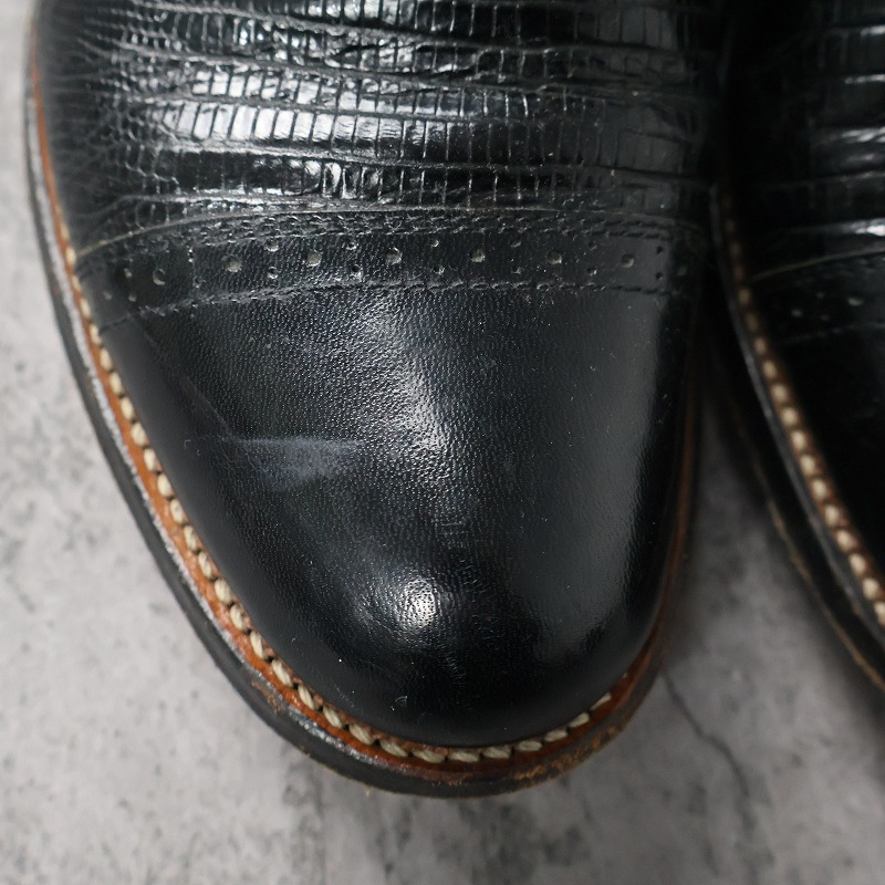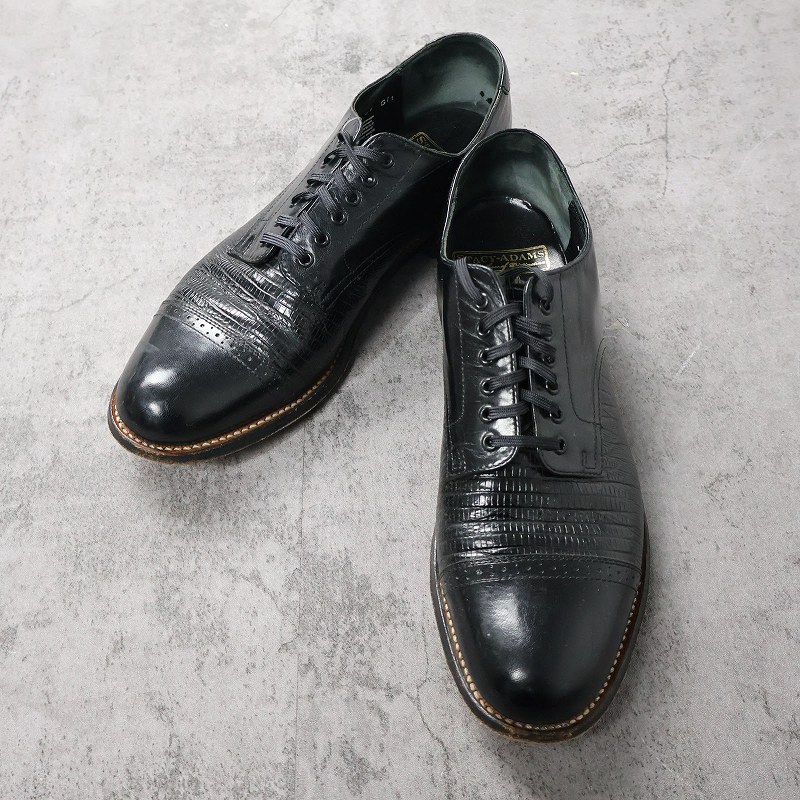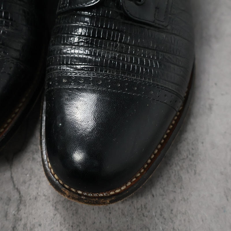 80〜90's STACY-ADAMS ITALY製 型押しクロコ ストレートチップ レザーシューズ 27cm [162461]