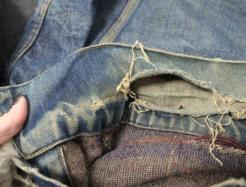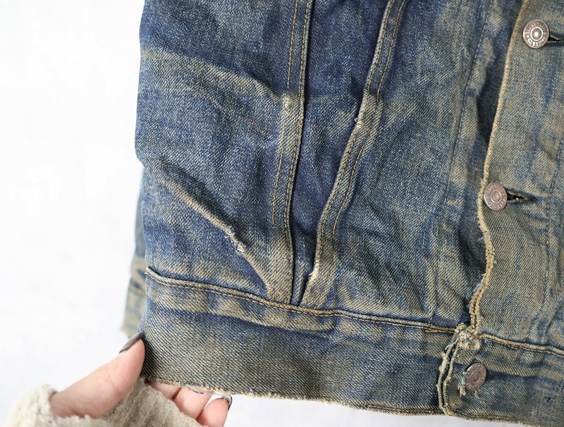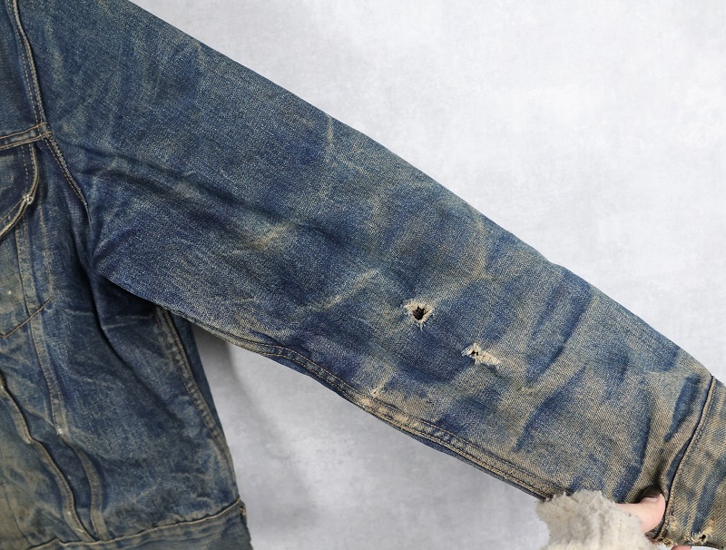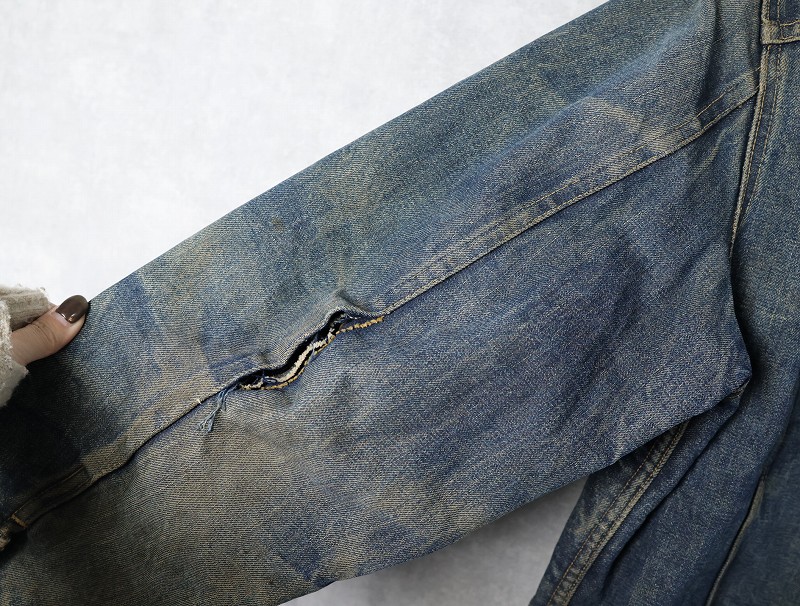 - 汚れやダメージ、ほつれや穴、裂けや色褪せがあり、ビンテージらしい良い雰囲気が出ており、大変かっこいい一点です。