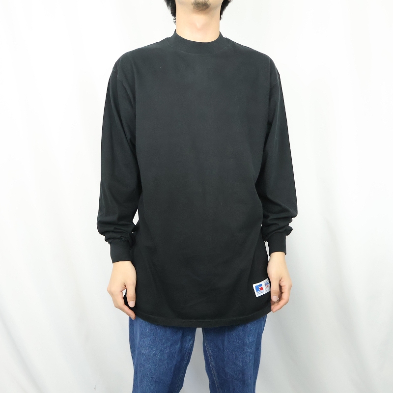 90's RUSSELL ATHLETIC USA製 "HIGH COTTON" 無地ロンT BLACK L [162508]