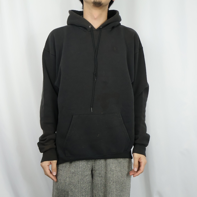 80〜90's BVD USA製 無地スウェットフーディー BLACK XL [162527]