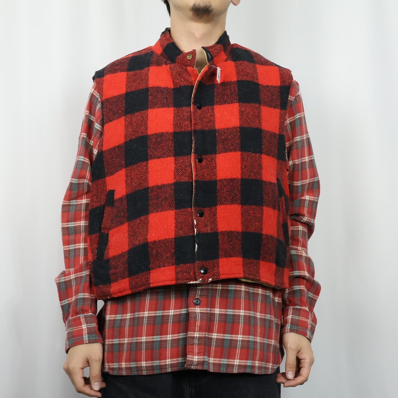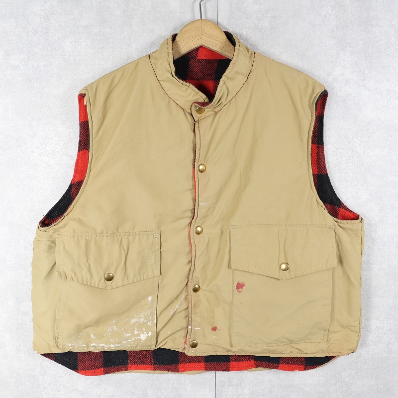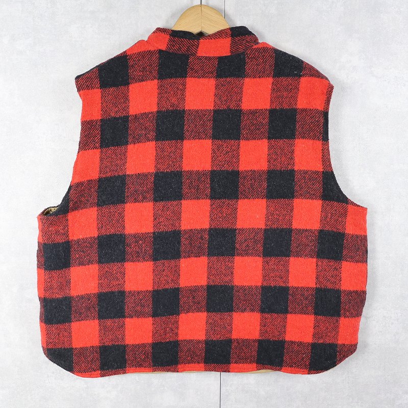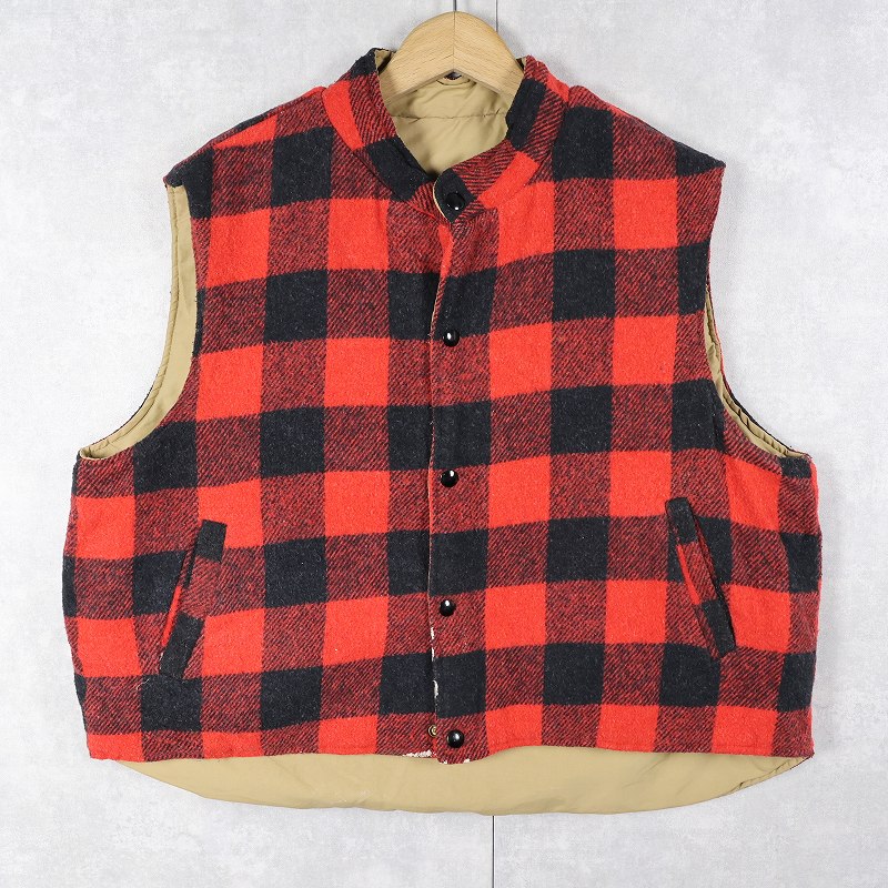 90's WEATHERGUARD バッファローチェック柄 ウール×ナイロン リバーシブルベスト XL [162581]