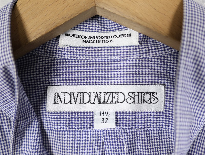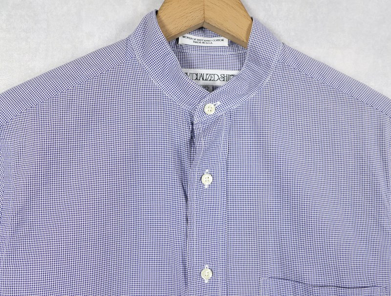 INDIVIDUALIZED SHIRTS USA製 ギンガムチェック柄 バンドカラーコットンシャツ SIZE14 1/2 32 [162633]