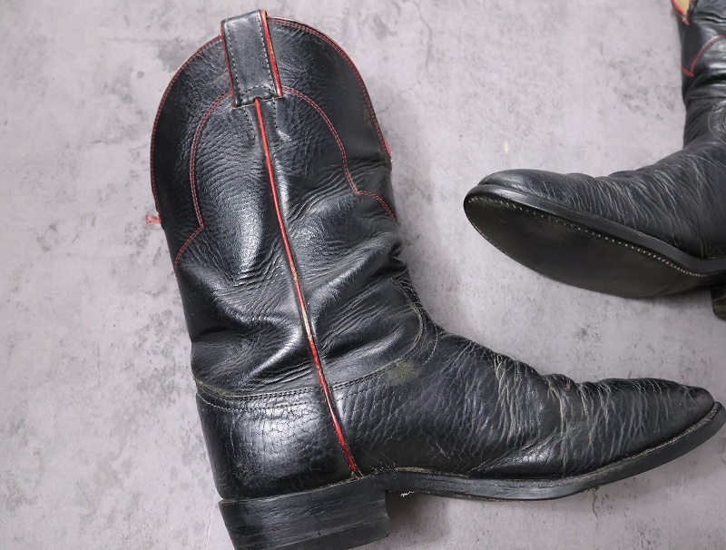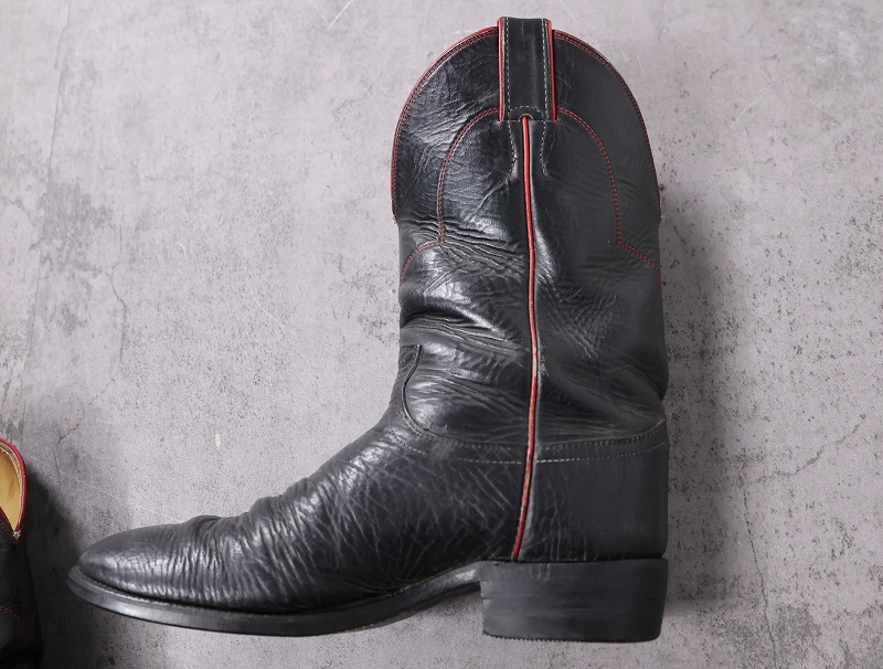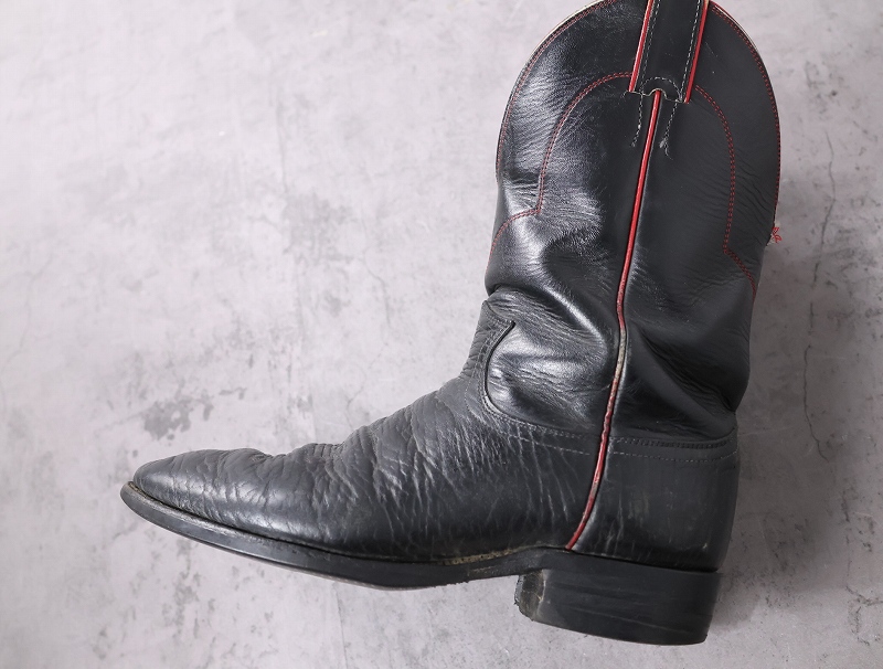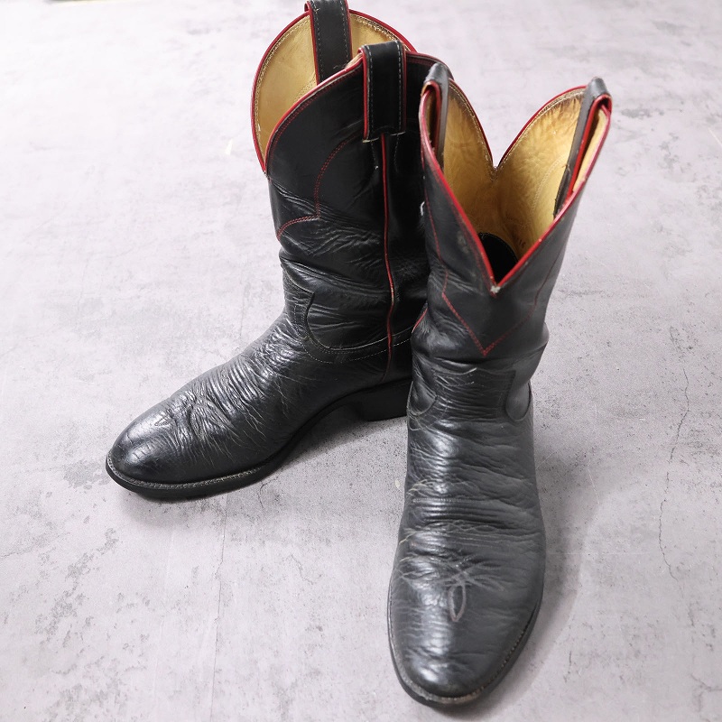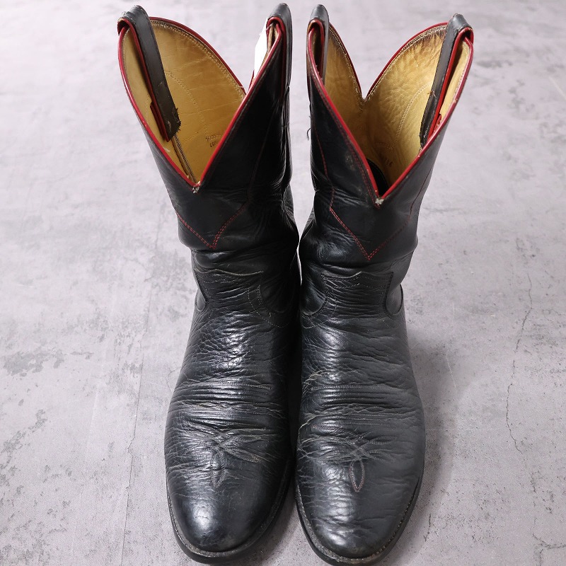 VINTAGE Justin USA製 レザーウエスタンブーツ BLACK 26.5cm [162671]