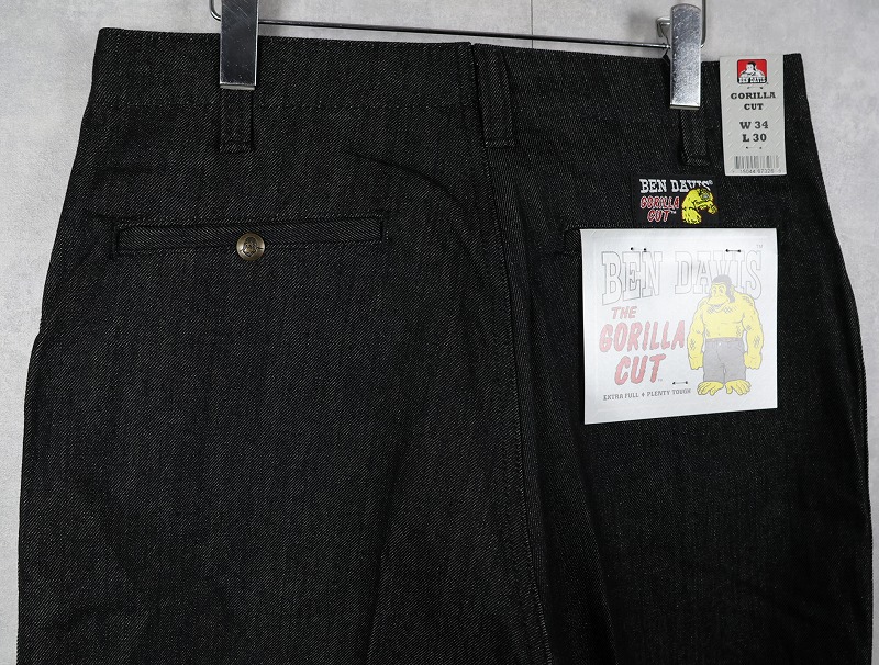 BEN DAVIS "THE GORILLA CUT" ゴリラカットデニムパンツ BLACK フラッシャー付き未使用品 W34 L30 [162672]