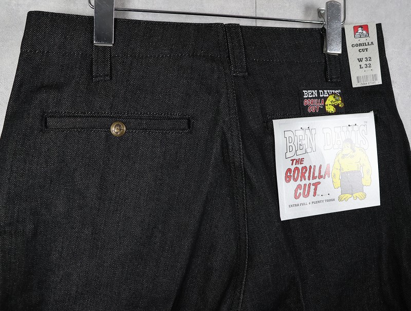 BEN DAVIS "THE GORILLA CUT" ゴリラカットデニムパンツ BLACK フラッシャー付き未使用品 W32 L32 [162673]
