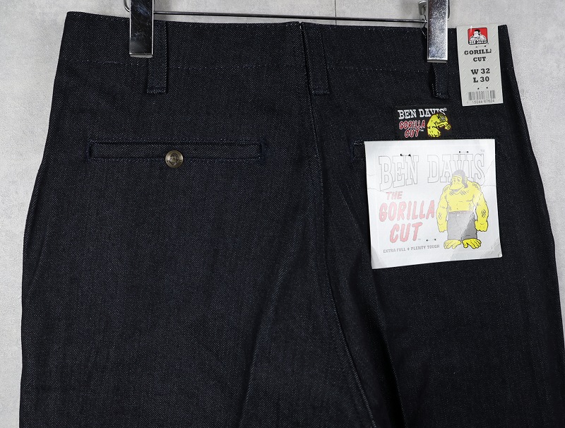 BEN DAVIS "THE GORILLA CUT" ゴリラカットデニムパンツ INDIGO DENIM フラッシャー付き未使用品 W32 L30 [162676]