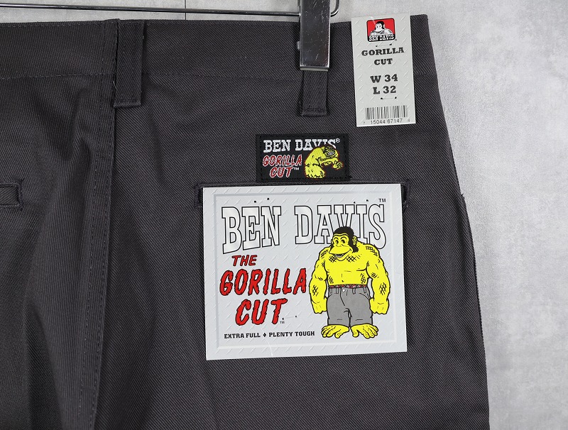 BEN DAVIS "THE GORILLA CUT" ゴリラカットパンツ CHARCOAL フラッシャー付き未使用品 W34 L32 [162681]