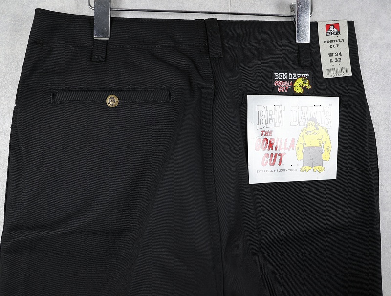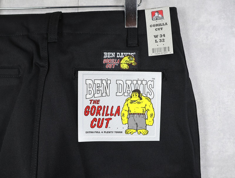 BEN DAVIS "THE GORILLA CUT" ゴリラカットパンツ BLACK フラッシャー付き未使用品 W34 L32 [162682]