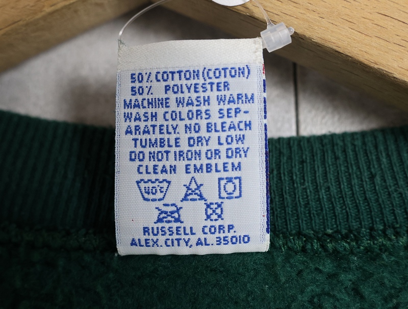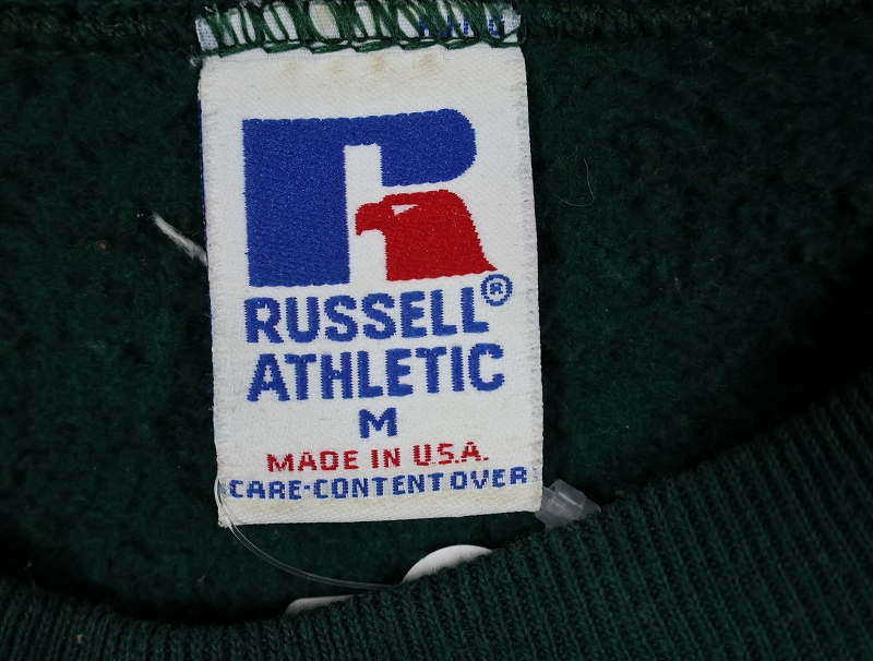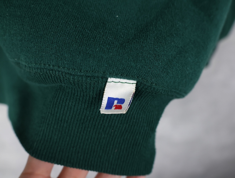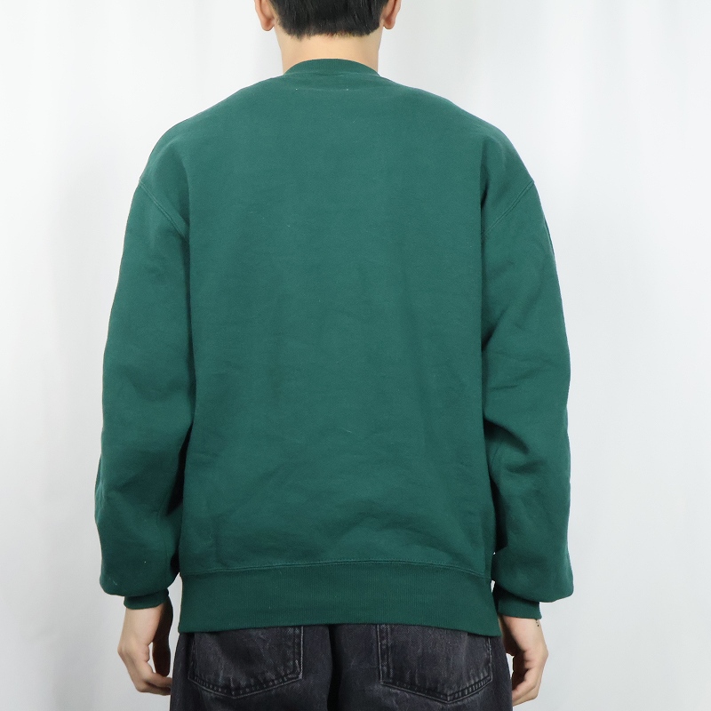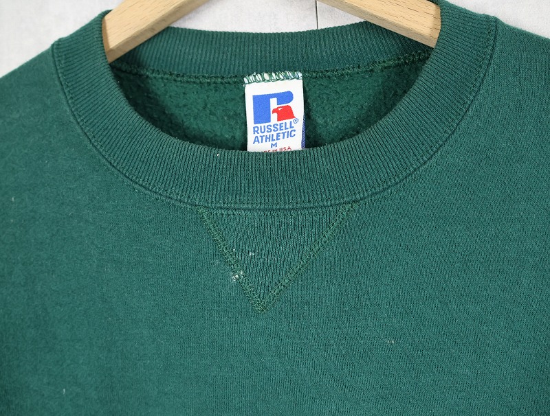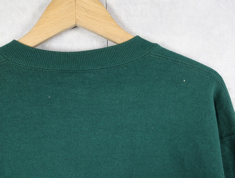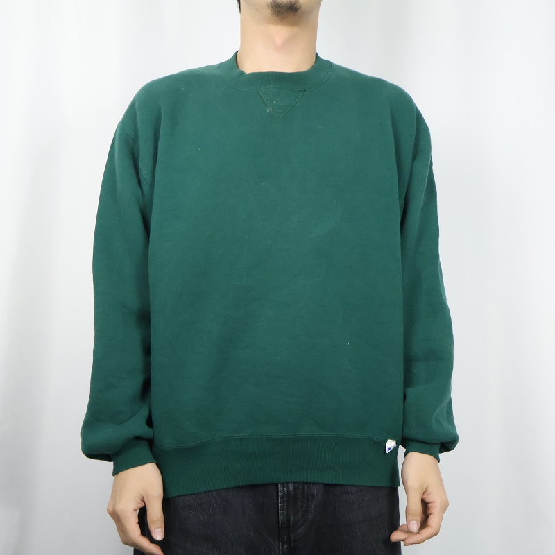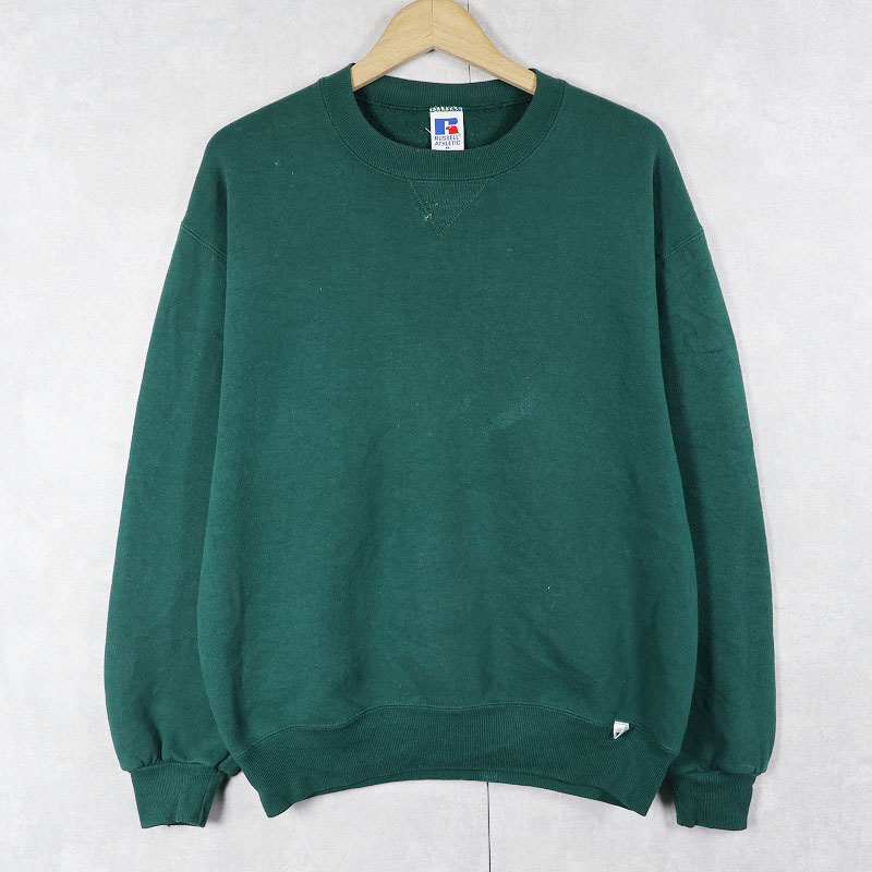 90's RUSSELL ATHLETIC USA製 前V 無地スウェット GREEN M [162692]