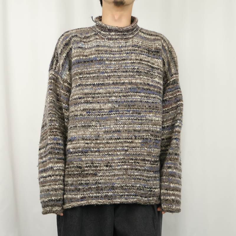 Ginger Blossom NEPAL製 マルチボーダー柄 ロールネック ウールニットセーター [162704]