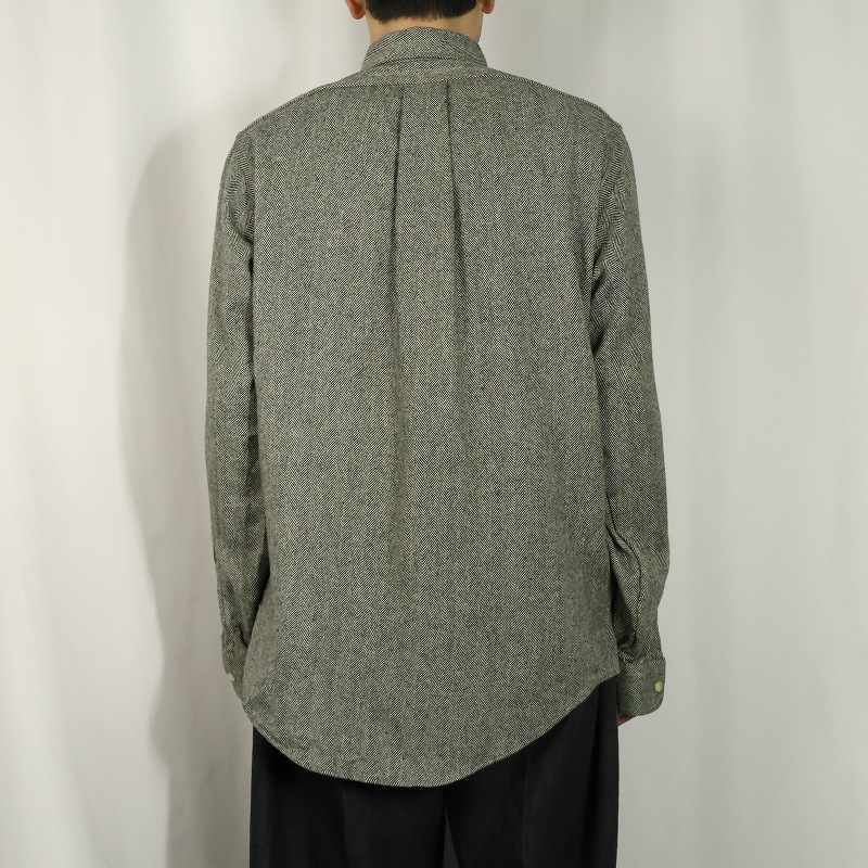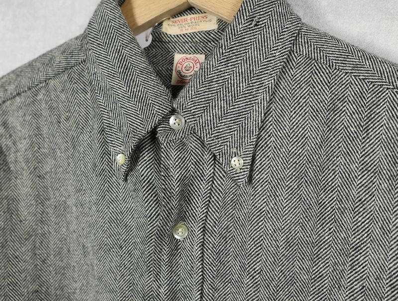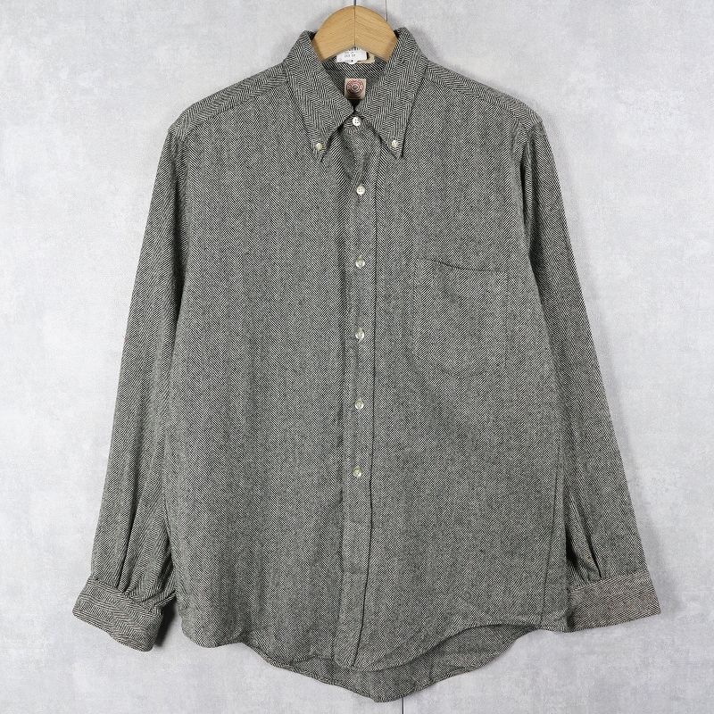 60〜70's Donegal 織柄 アクリル×ウールボタンダウンシャツ M [162707]