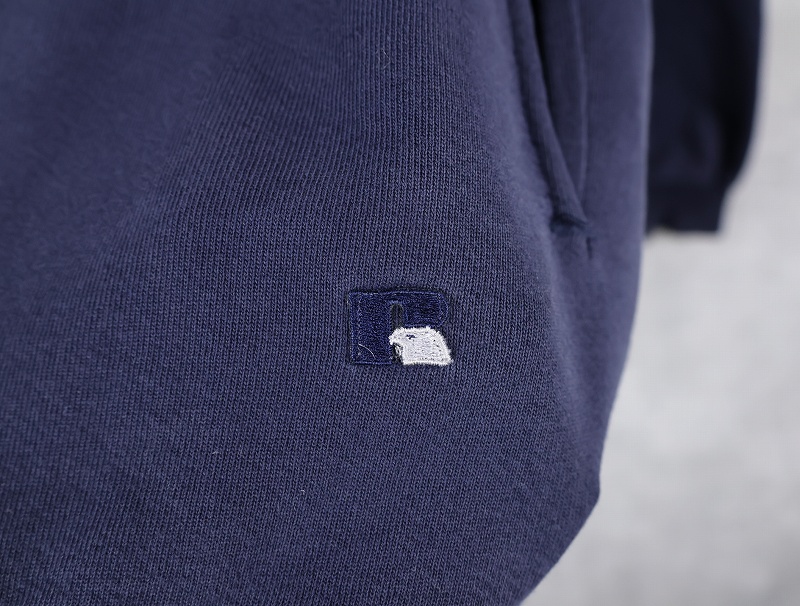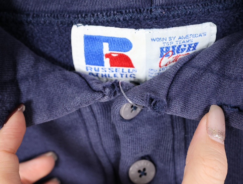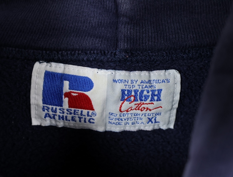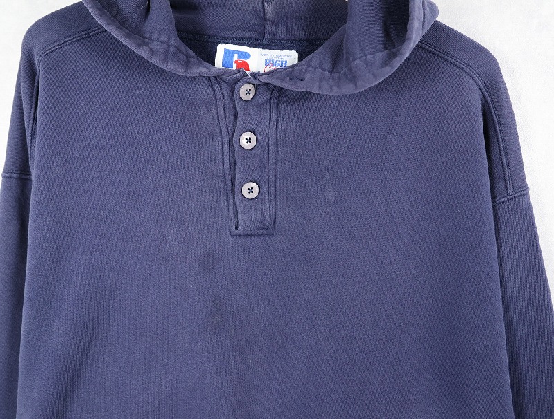 90's RUSSELL ATHLETIC USA製 "HIGH COTTON" ヘンリーネックスウェットフーディー NAVY XL [162712]