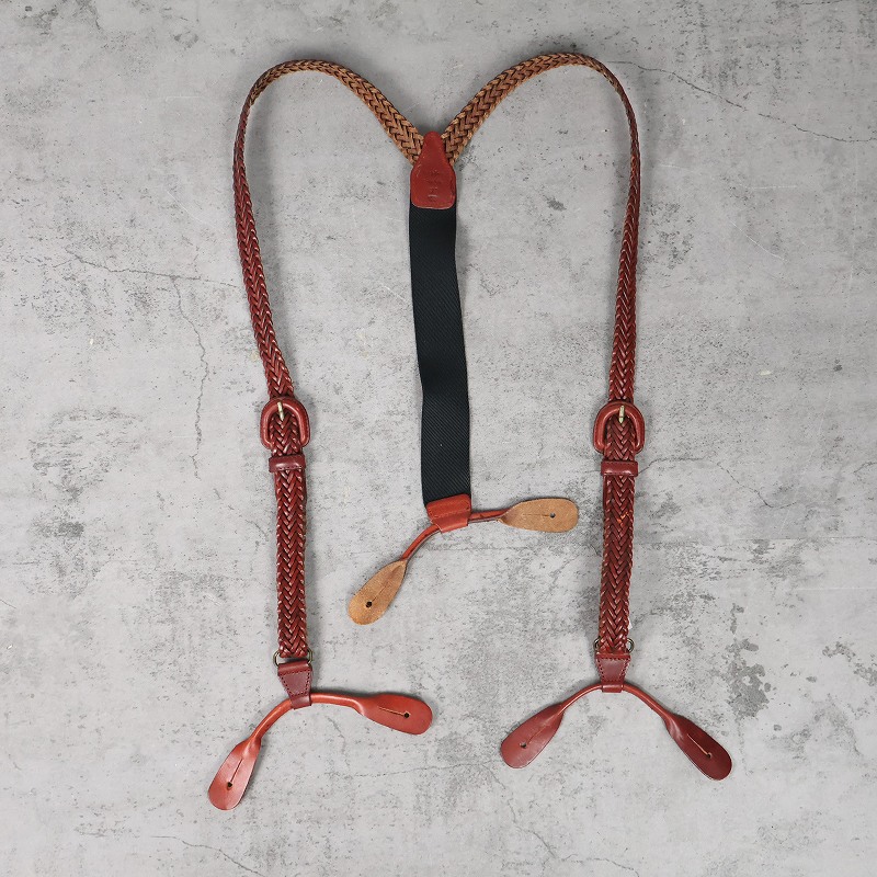 VINTAGE ボタン留め メッシュレザーサスペンダー [162721]