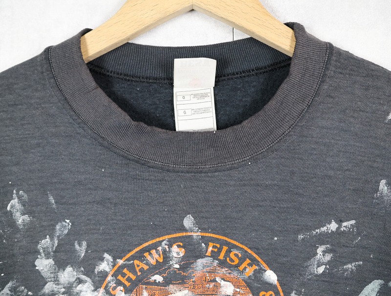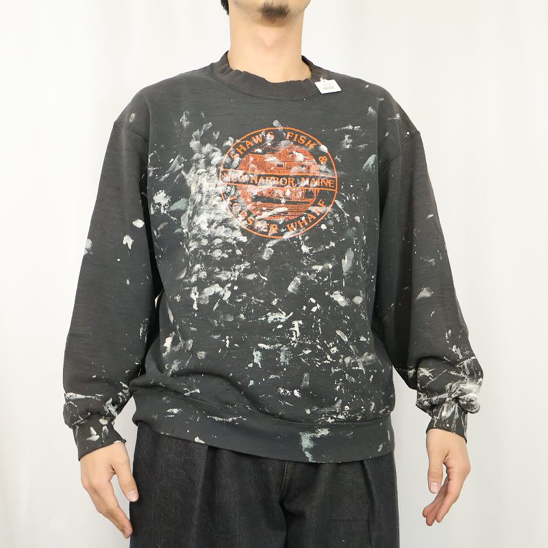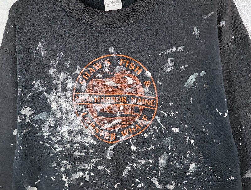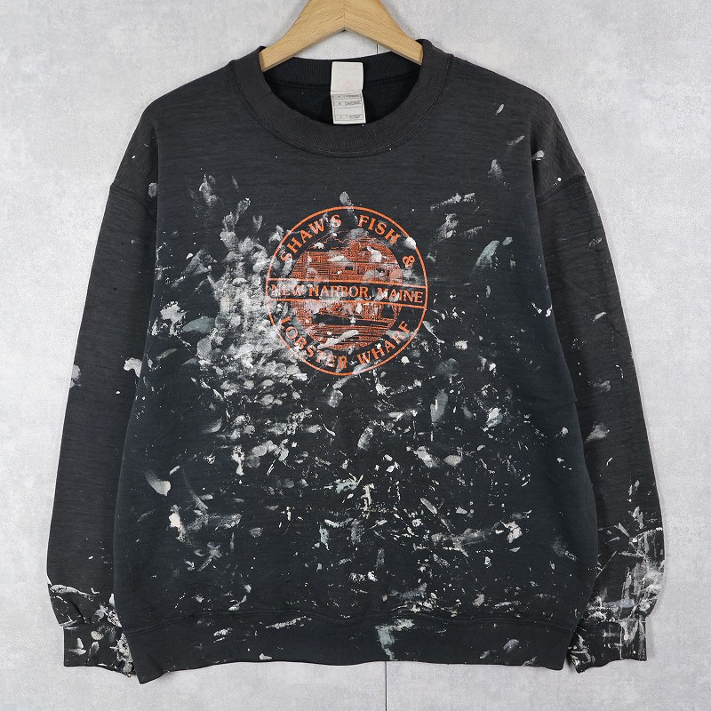"SHAW'S FISH & LOBSTER WHARF" ペンキペイント プリントスウェット BLACK L [162722]