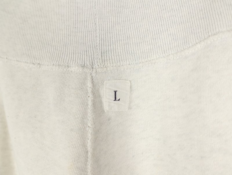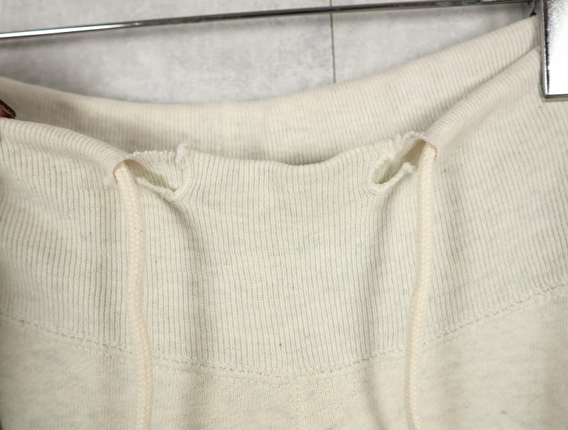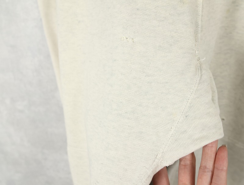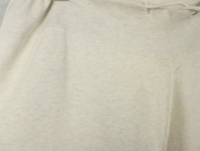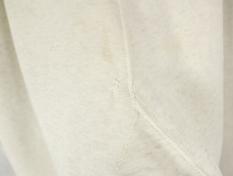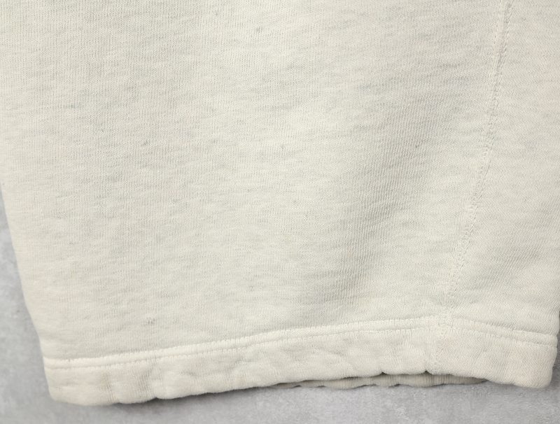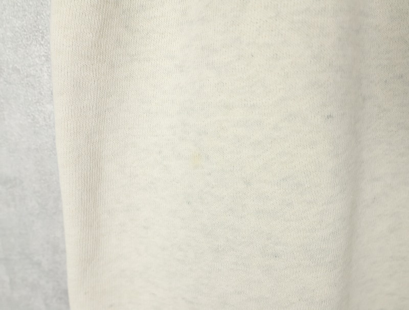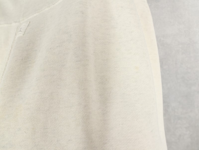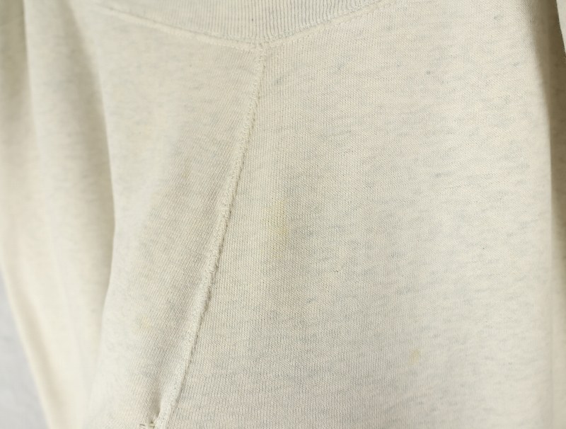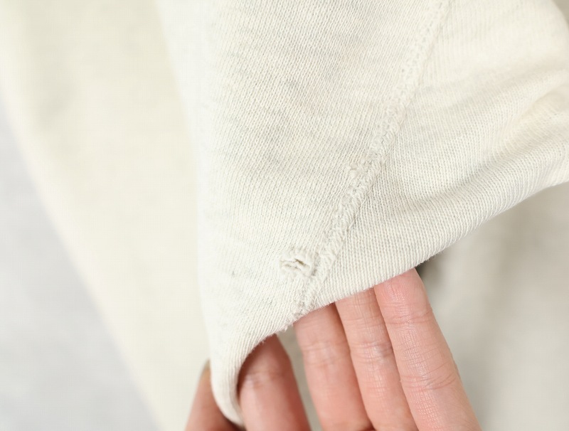 素材は中肉のスウェット地。オフホワイトに杢が見え隠れするビンテージスウェットらしい風合いを持ったモデルです。
