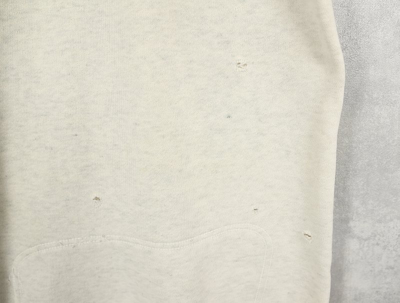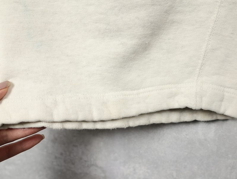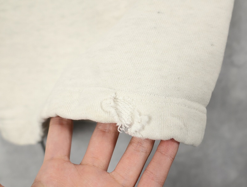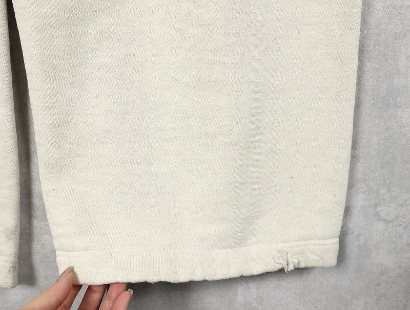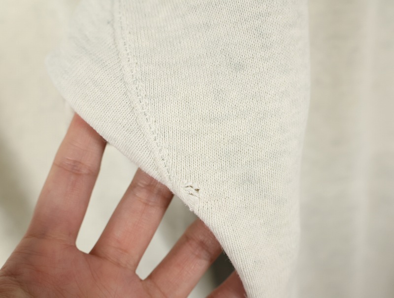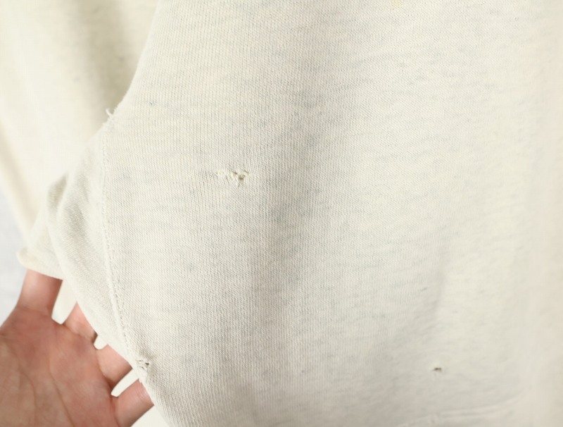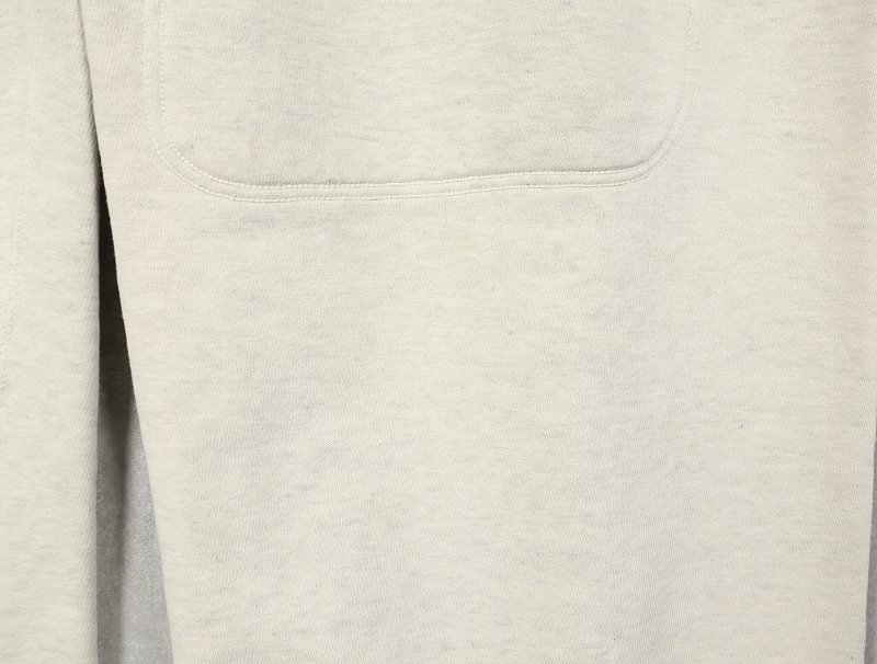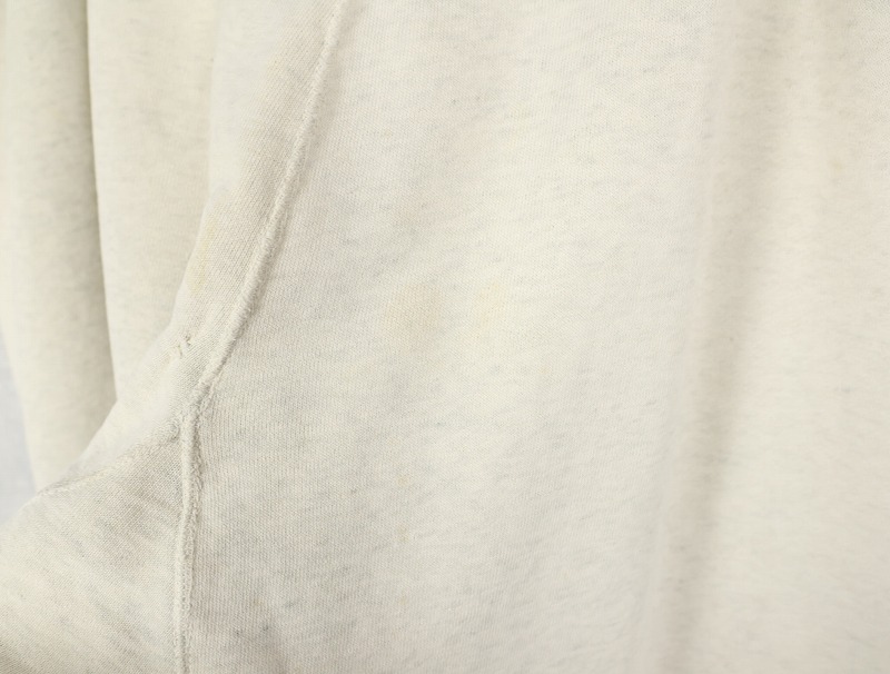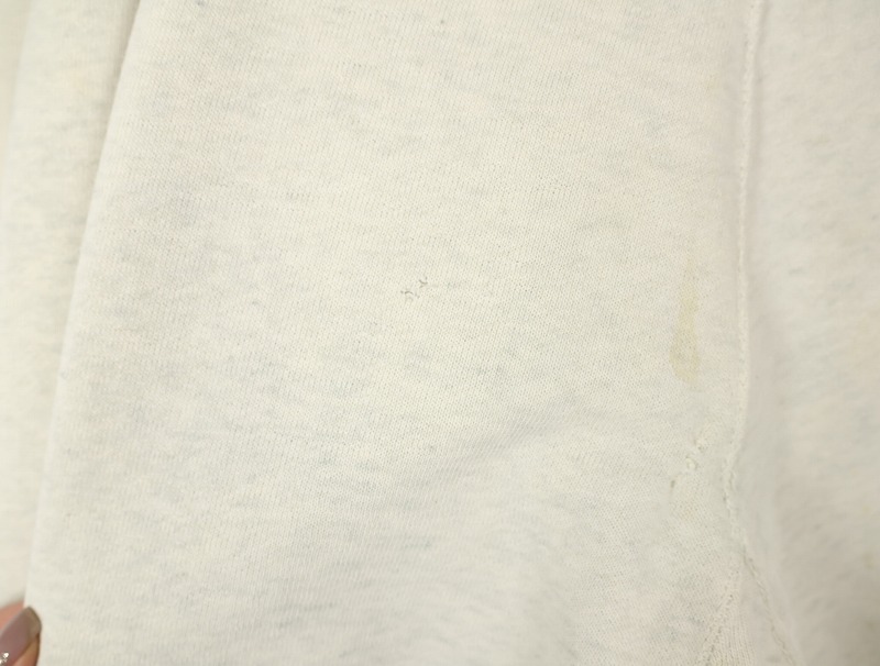 素材は中肉のスウェット地。オフホワイトに杢が見え隠れするビンテージスウェットらしい風合いを持ったモデルです。