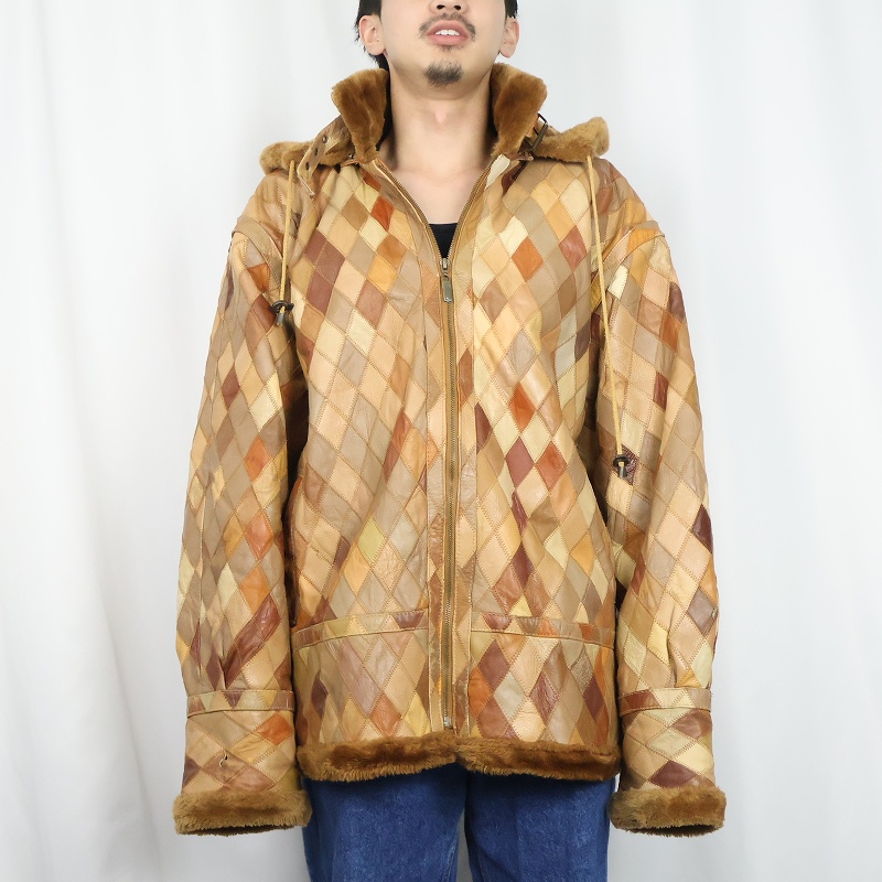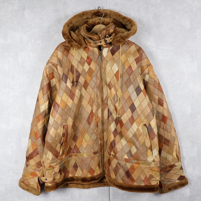 90's LEGACY 裏ボア パッチワークレザージャケット 2XL [162804]