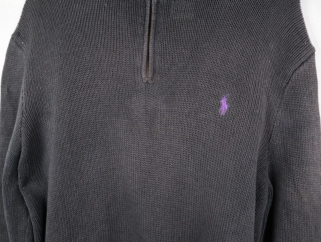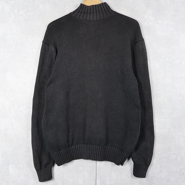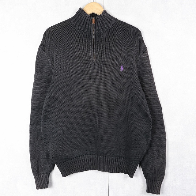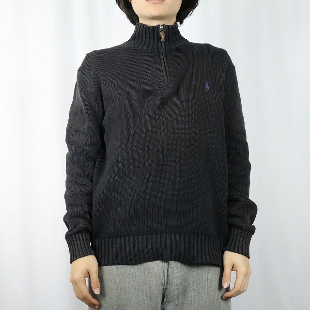 POLO Ralph Lauren ロゴ刺繍 ハーフジップコットンニットセーター BLACK M [162811]
