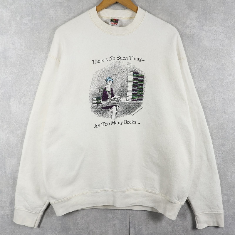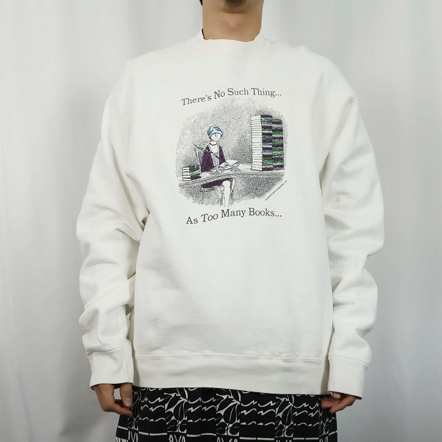 90's Edward Gorey USA製 "There's No Such Thing...As Too Many Books..." イラストプリントスウェット XL [162955]