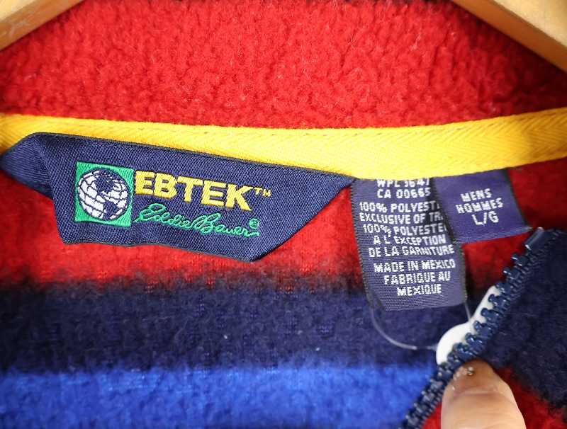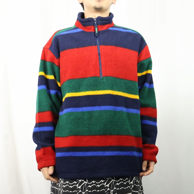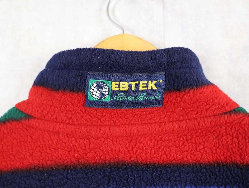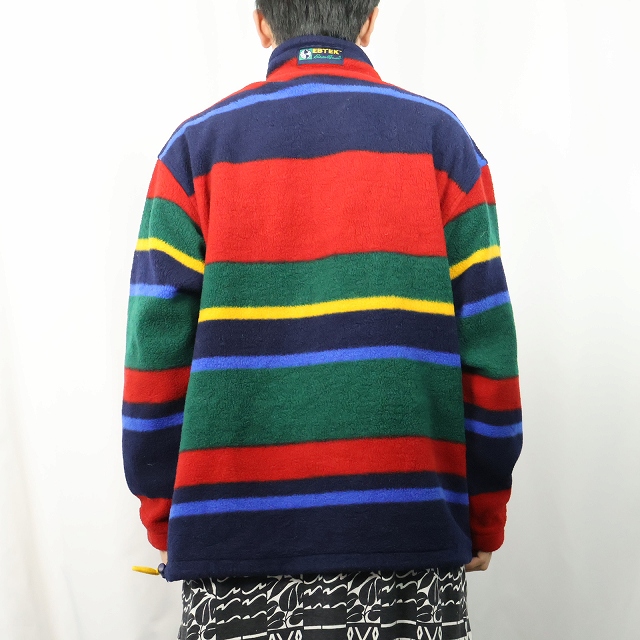90's Eddie Bauer EBTEK マルチボーダー柄 フリースプルオーバージャケット L [162959]
