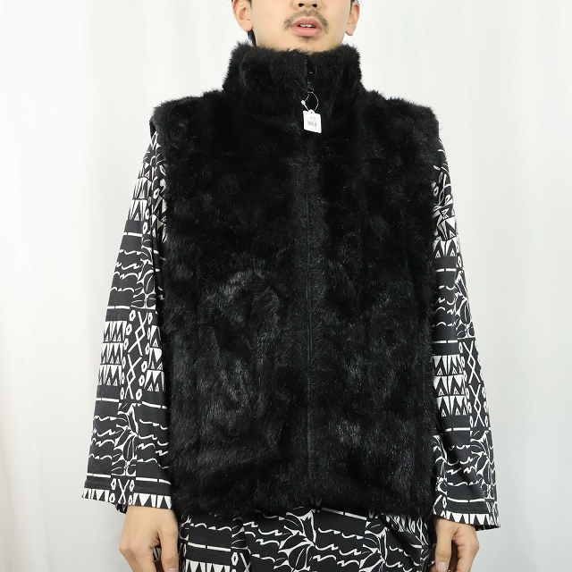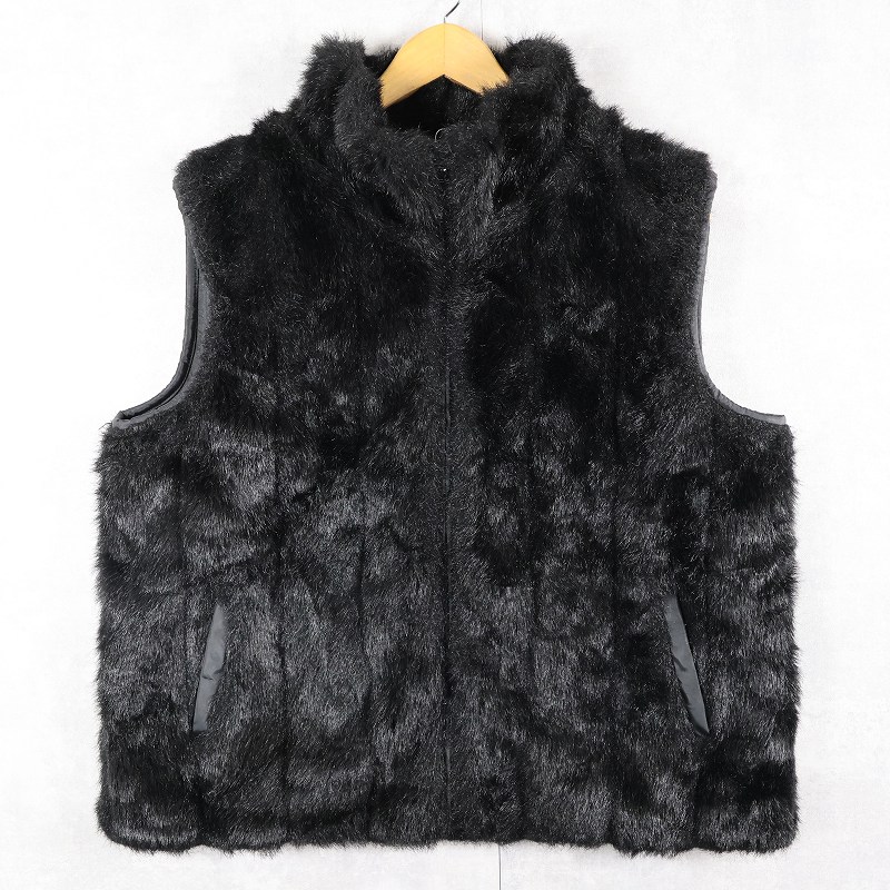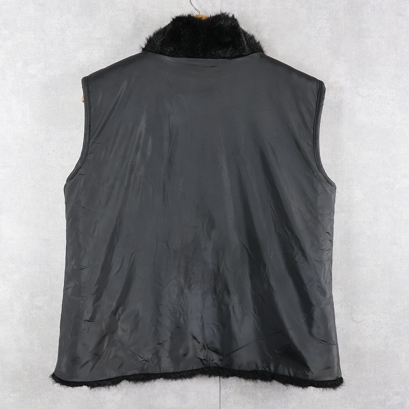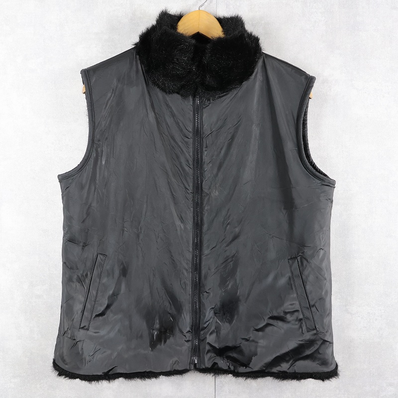 90's〜 gicca リバーシブル フェイクファーベスト BLACK XL [162962]