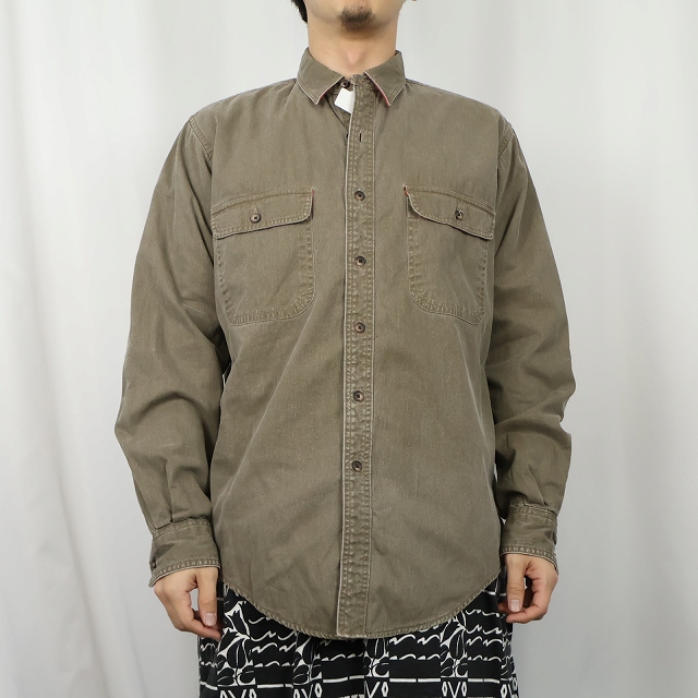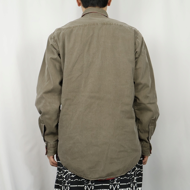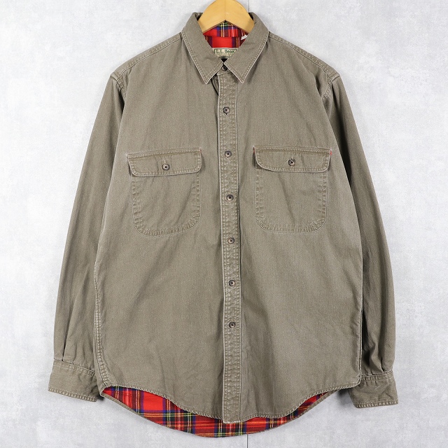 80〜90's L.L.Bean USA製 裏地チェック コットンワークシャツ M [162973]