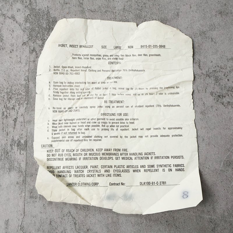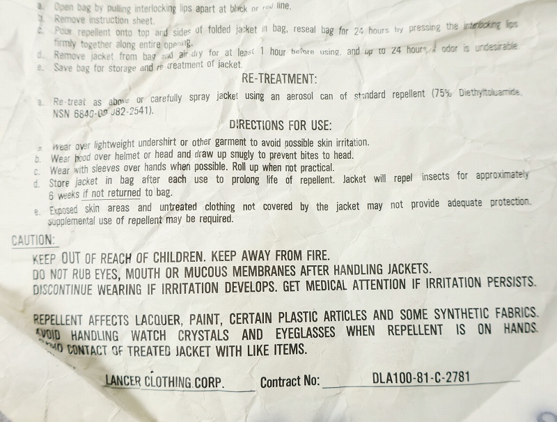80's U.S.ARMY モスキートパーカー LARGE DEADSTOCK [162984]