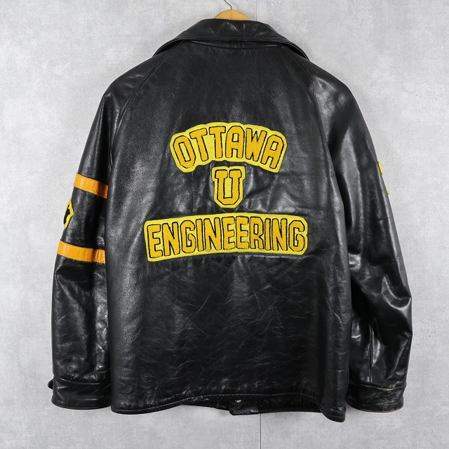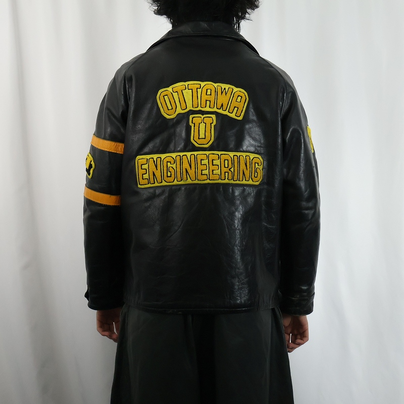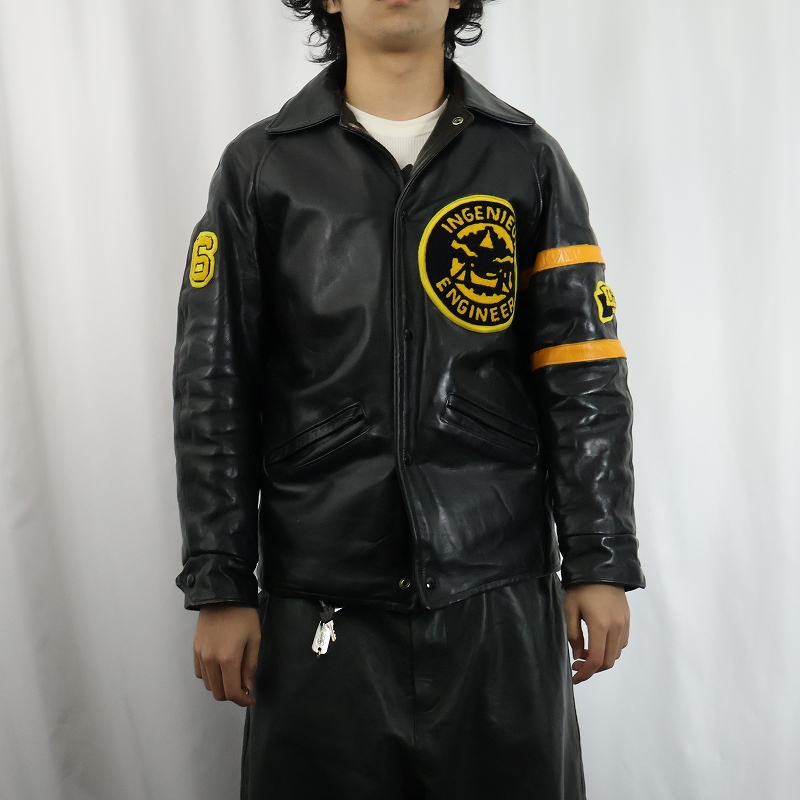 70〜80's ROLLY SARAULT パッチ付き キルティングライナー レザースタジャン SIZE38 [163013]