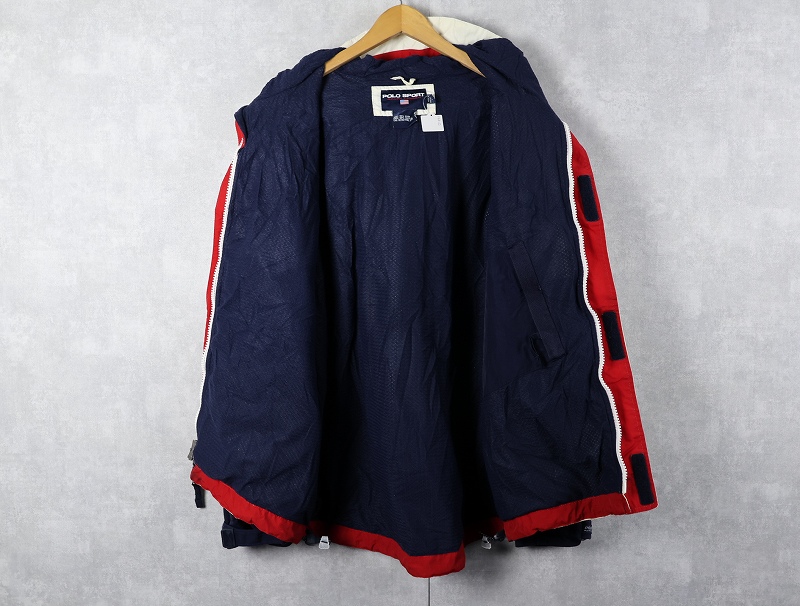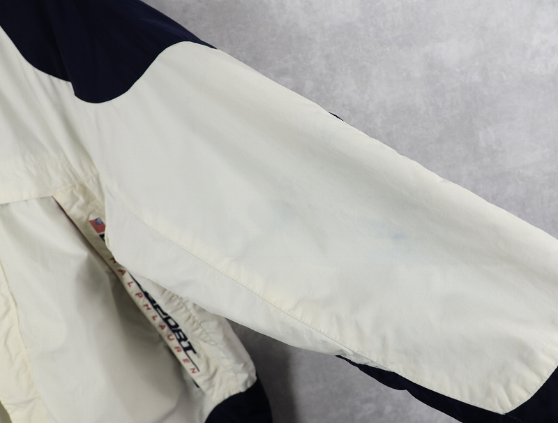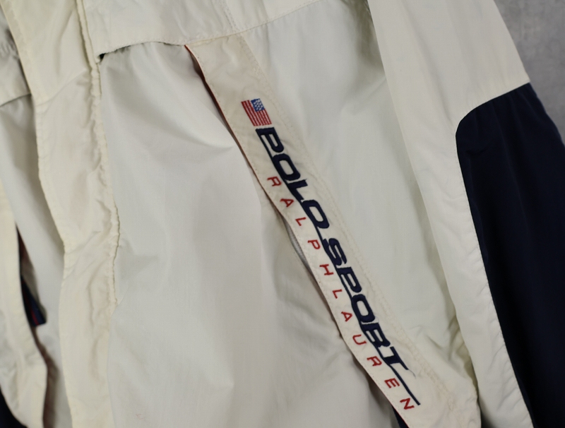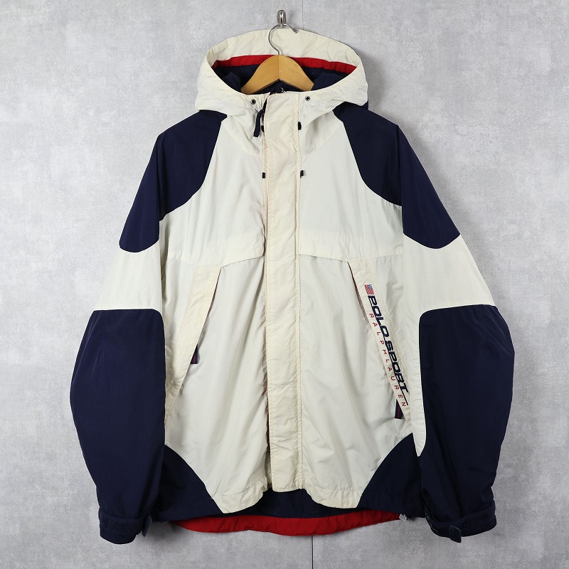 90's POLO SPORT Ralph Lauren ロゴ刺繍 ナイロンマウンテンパーカー WHITE×NAVY XL [163098]