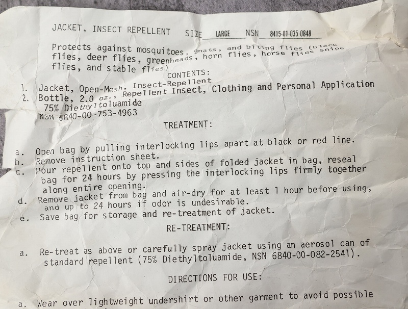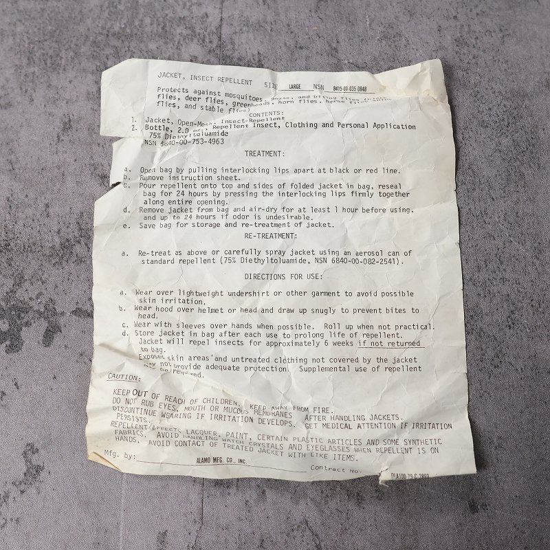 70's U.S.ARMY モスキートパーカー LARGE DEADSTOCK [163108]