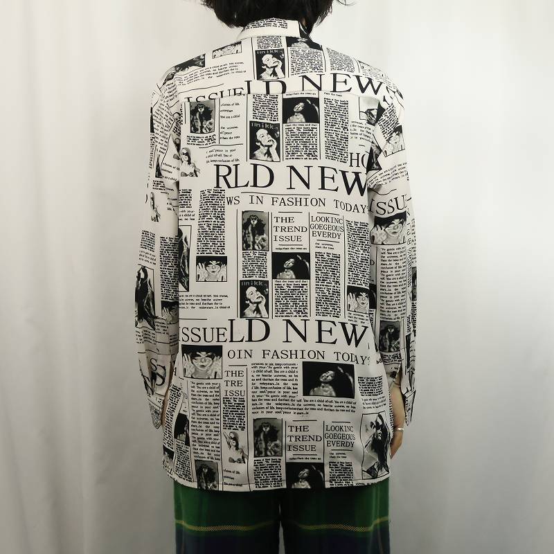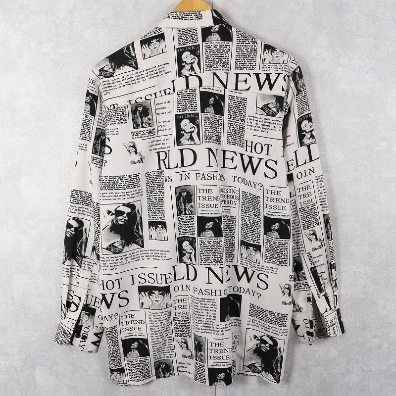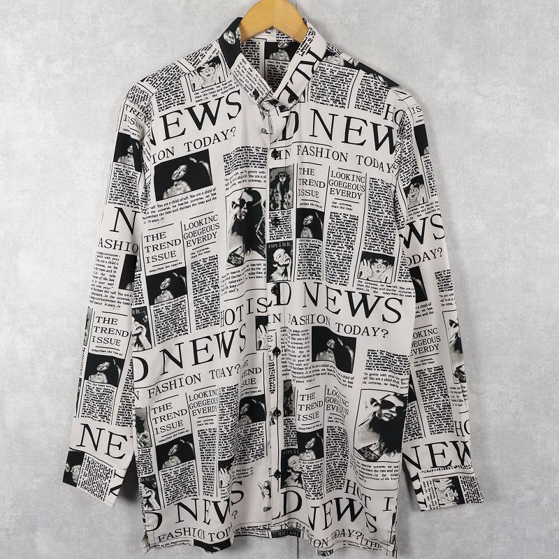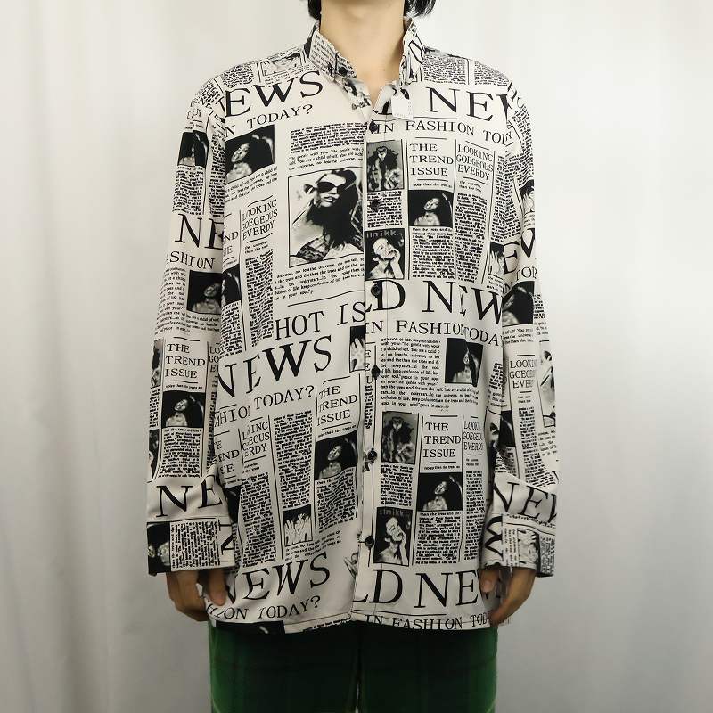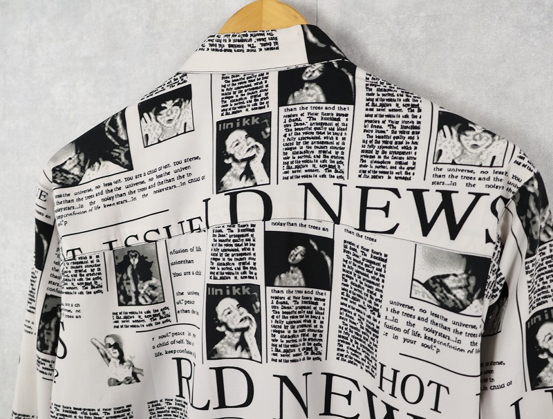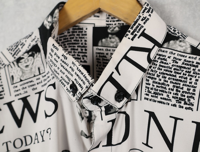 ニュースペーパー柄 ボタンダウンシャツ [163121]