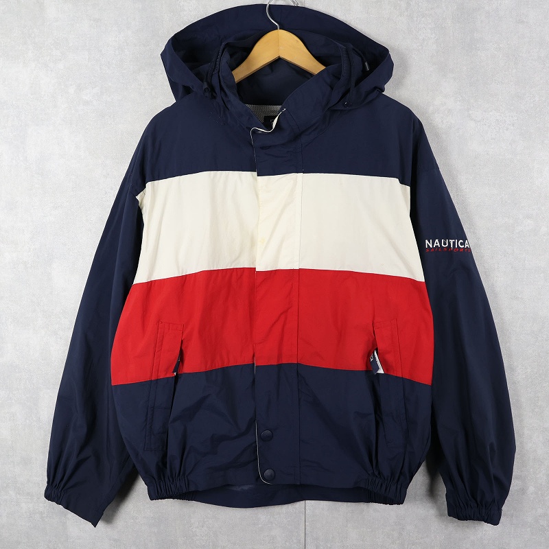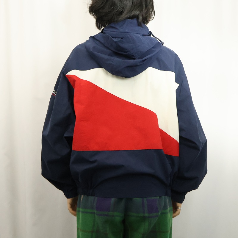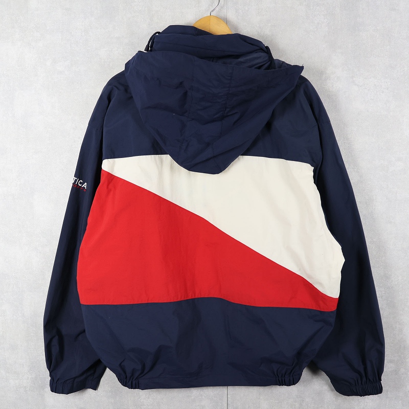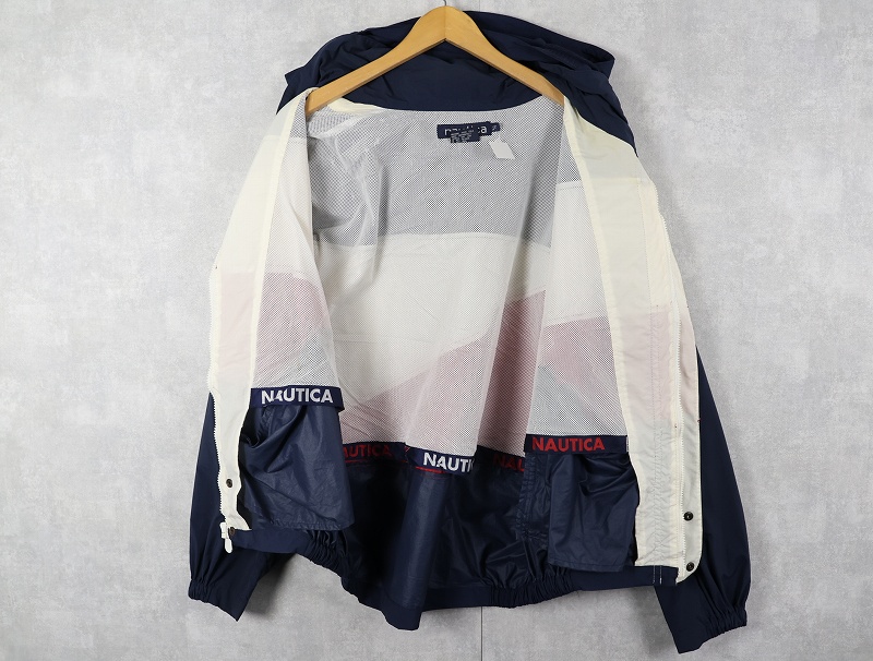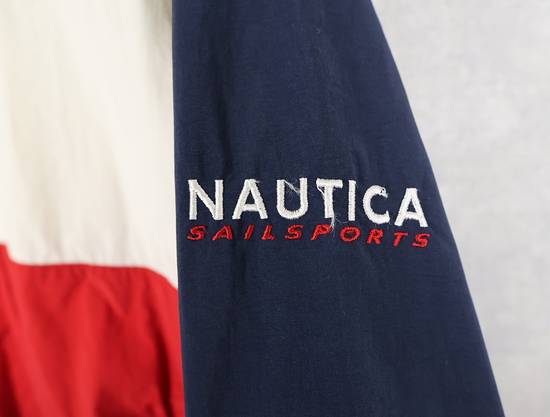 90's~ nautica ロゴ刺繍 ナイロンパーカー L [163126]