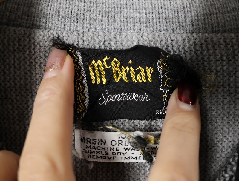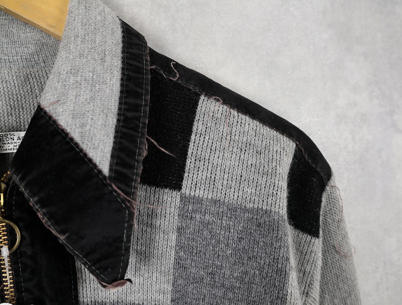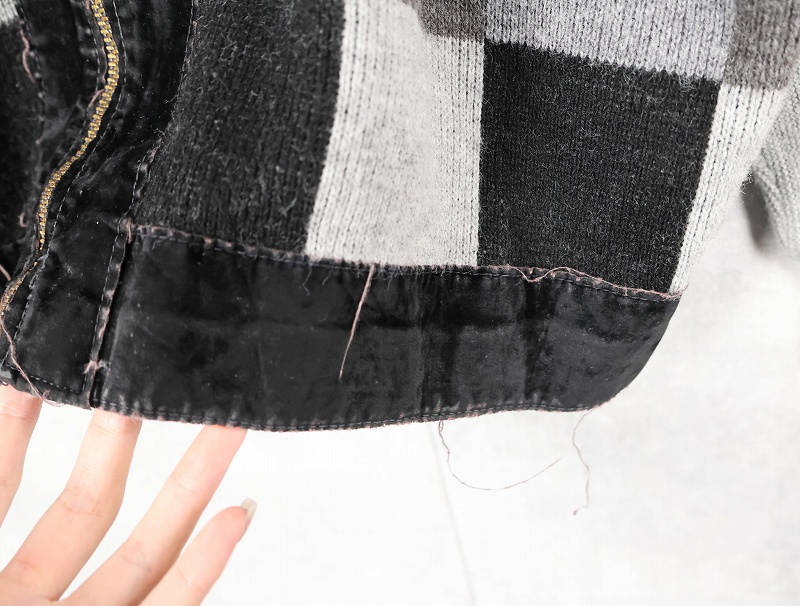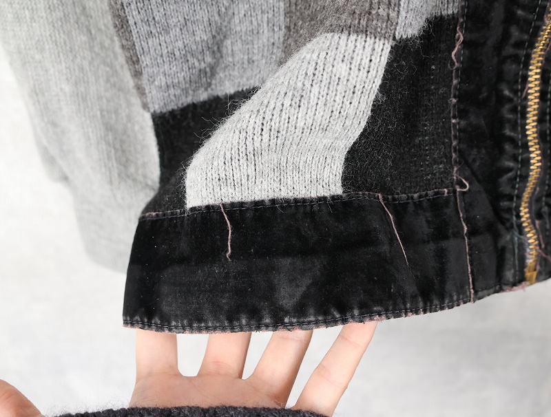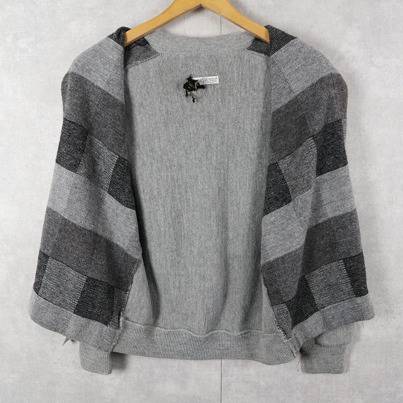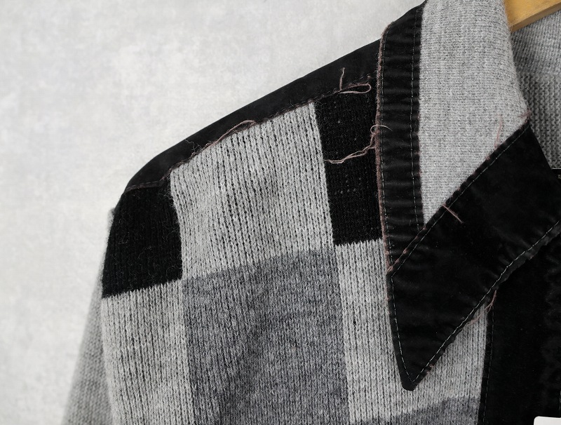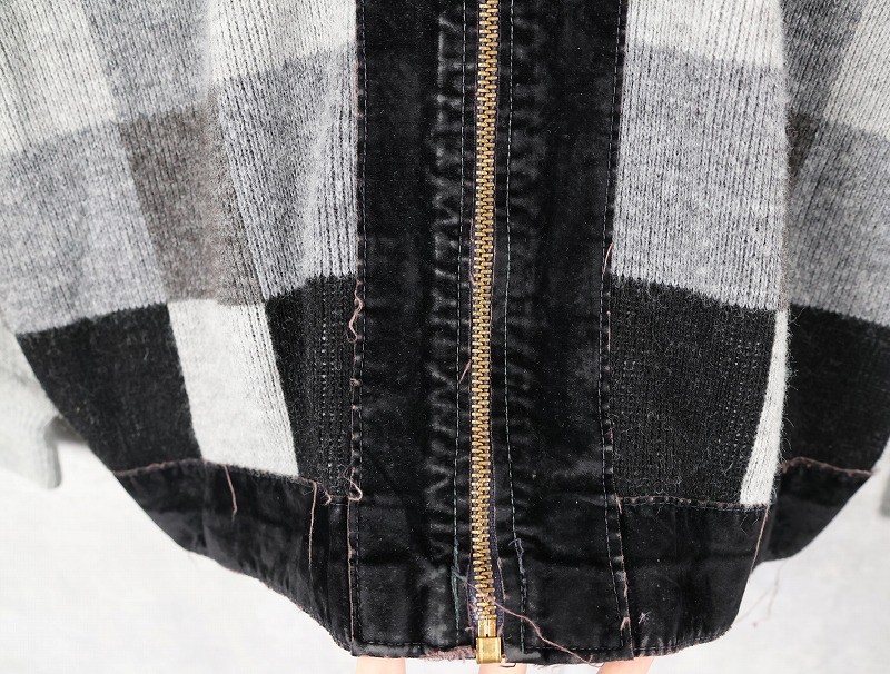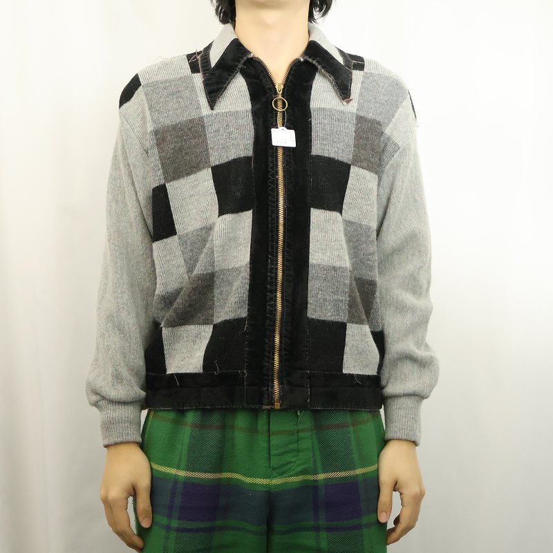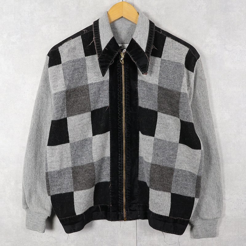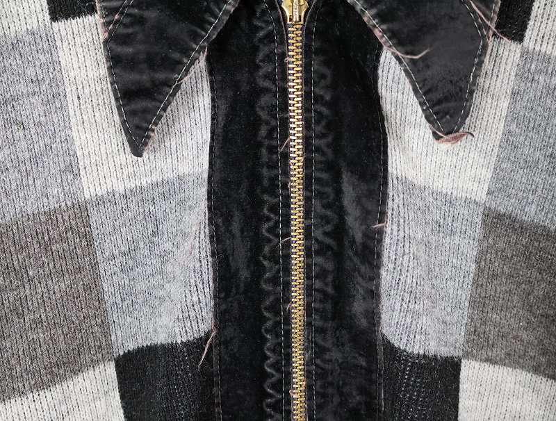 70's McBriar 格子柄 ベロア切り替え アクリルニットジャケット [163128]