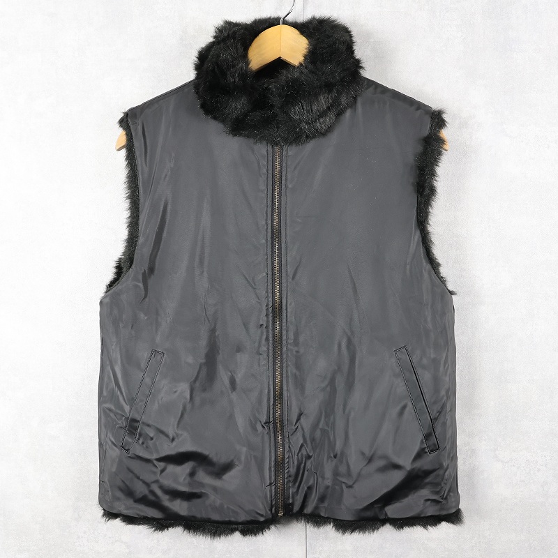 COACO リバーシブル フェイクファーベスト BLACK M [163173]